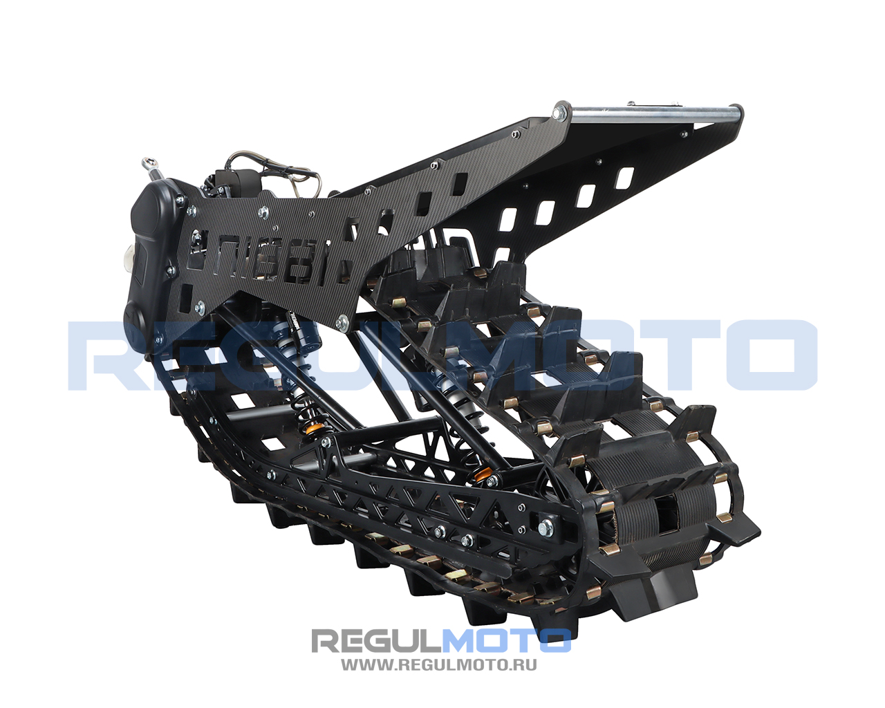 Вездеходная гусеничная система: Гусеница размером 3050 x 300 мм с грунтозацепами высотой 50 мм обеспечивает превосходное сцепление и проходимость. Комплект позволяет уверенно двигаться по снегу глубиной от 15 см и преодолевать даже глубокий рыхлый снег до 1,5–2 метров.