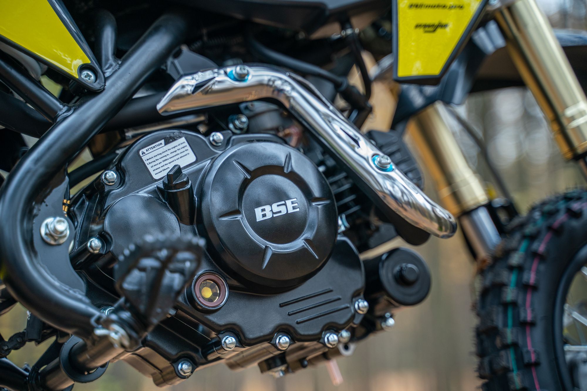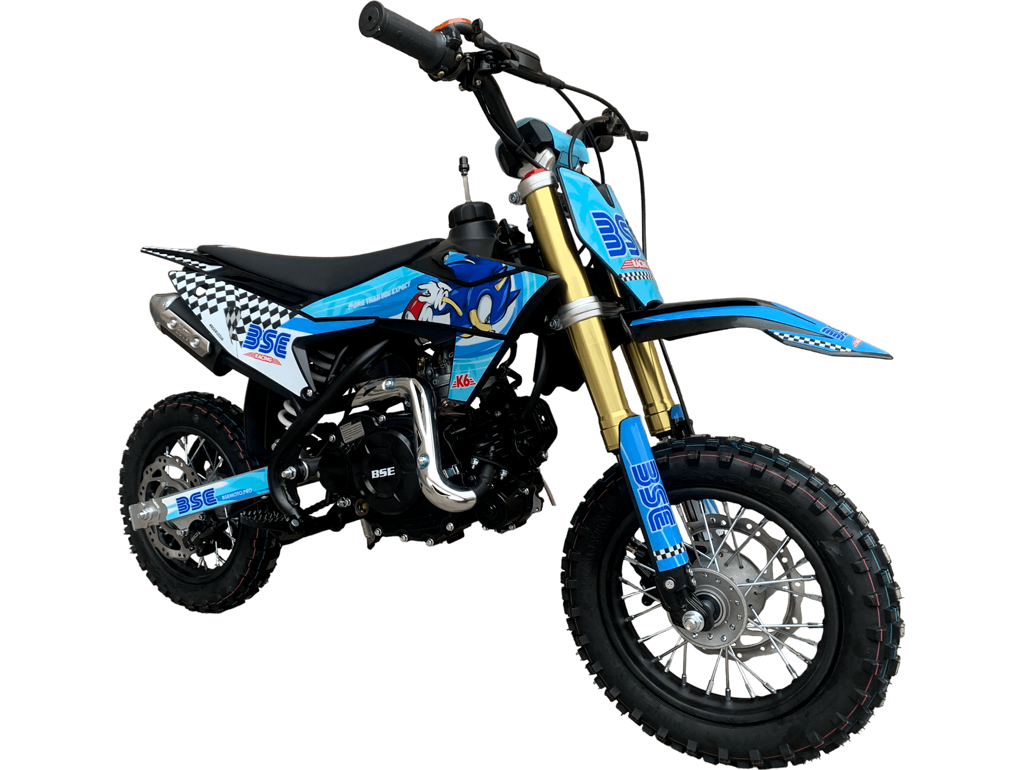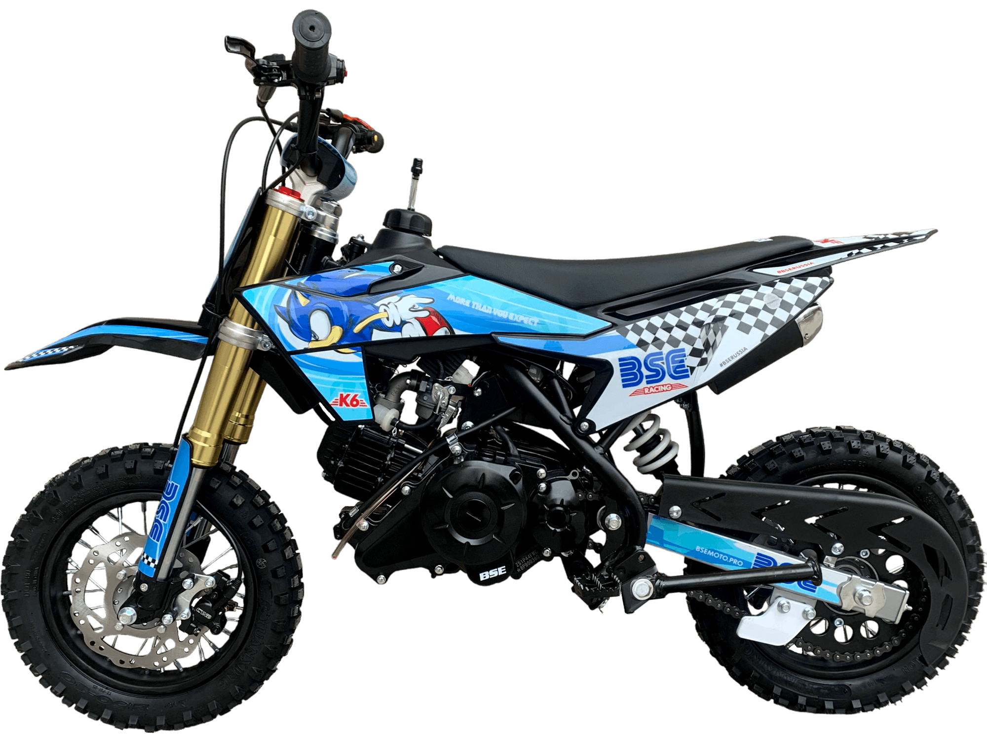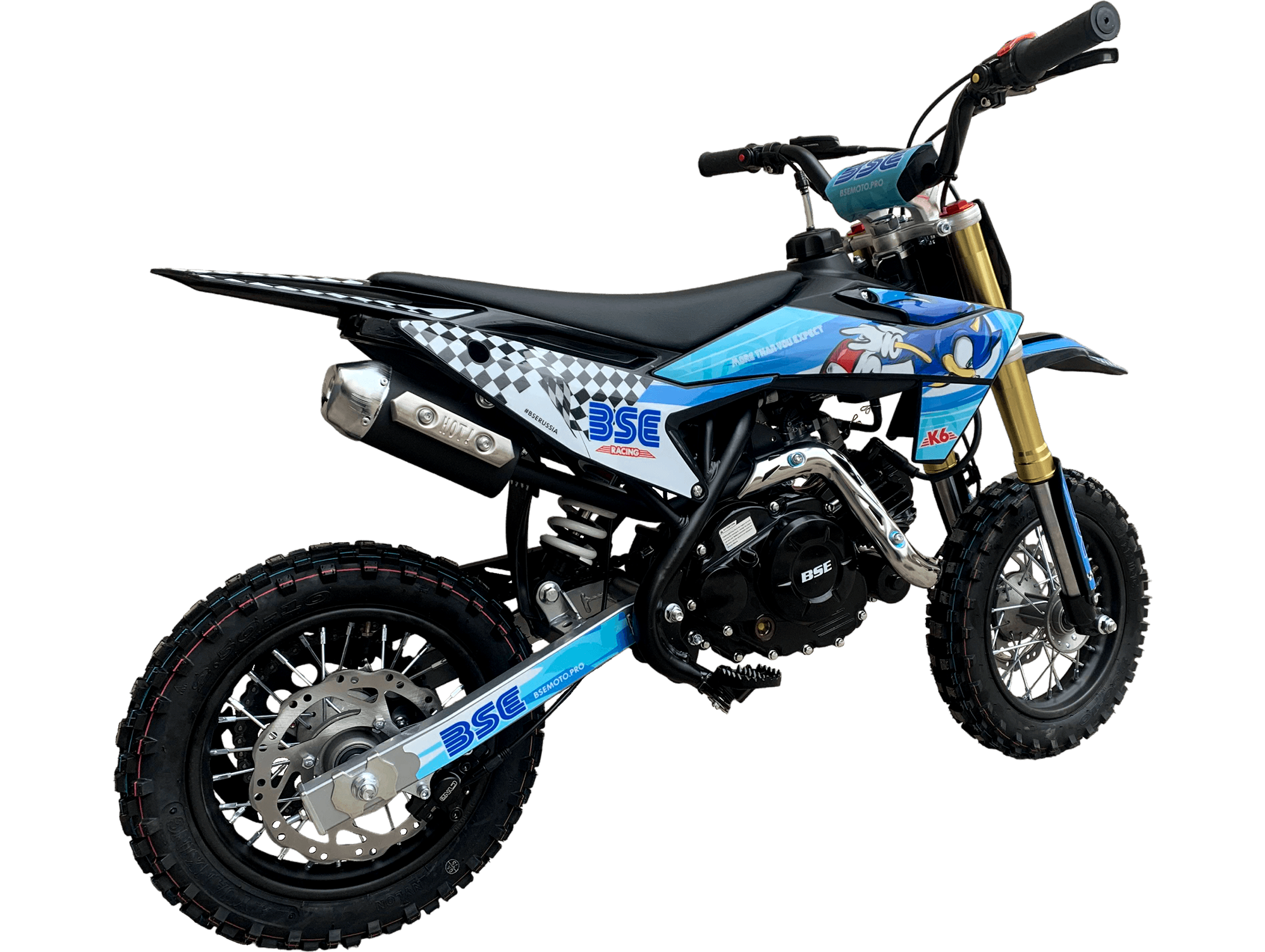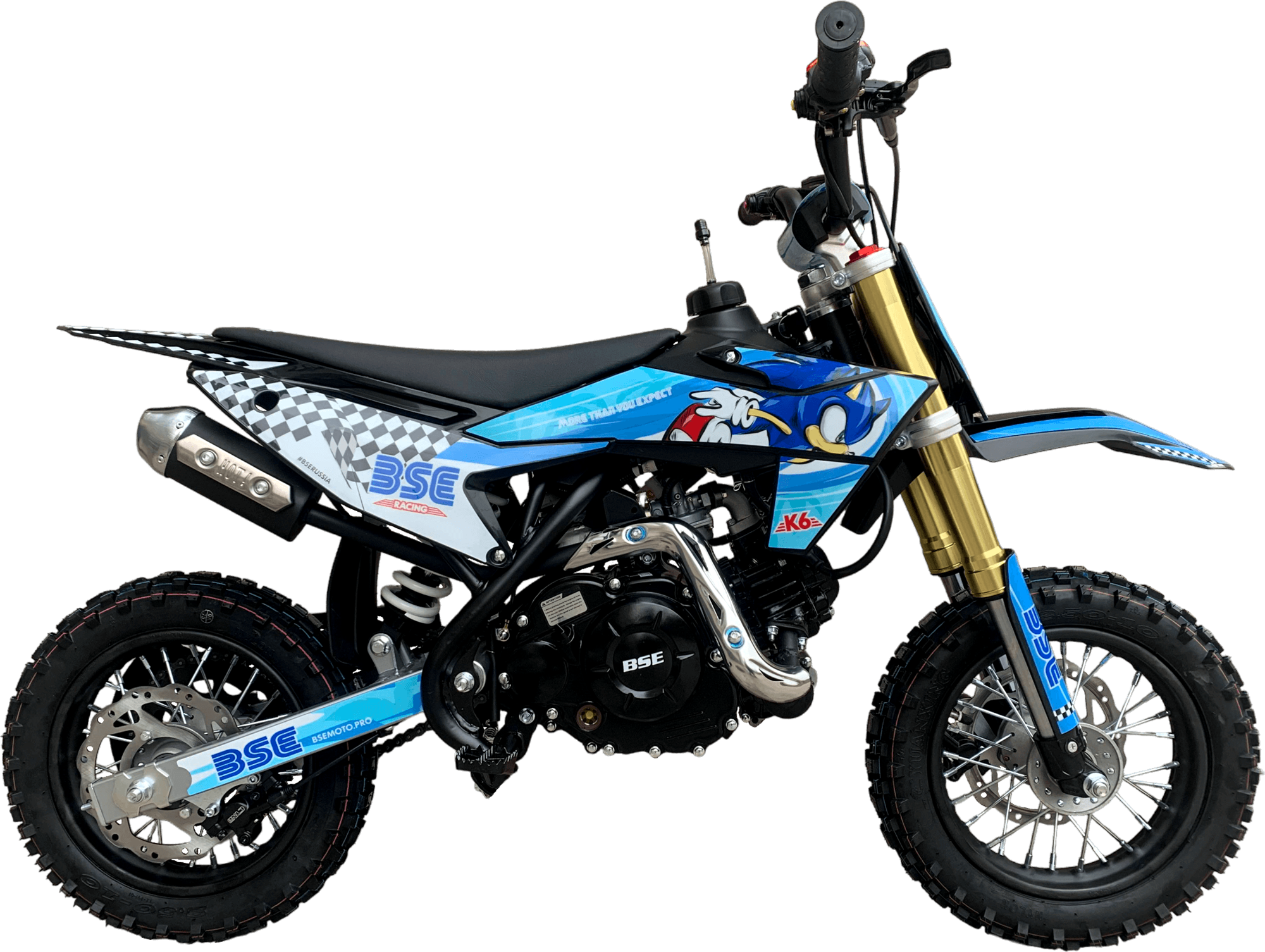 BSE K6 – детский мотоцикл для самых маленьких! Мотоцикл рассчитан на возраст 3-6 лет. Мотоцикл очень легкий, сухой вес всего 40 кг. K6 оснащен тяговитым 1 цилиндровым 60-кубовым мотором с воздушным охлаждением, данный мотор максимально неприхотлив. Электростартер и автоматическая трансмиссия с центробежным сцеплением заметно упрощает эксплуатацию мотоцикла. Яркий дизайн и внедорожный внешний вид, наподобие старших моделей BSE не оставит ни одного ребенка равнодушным.