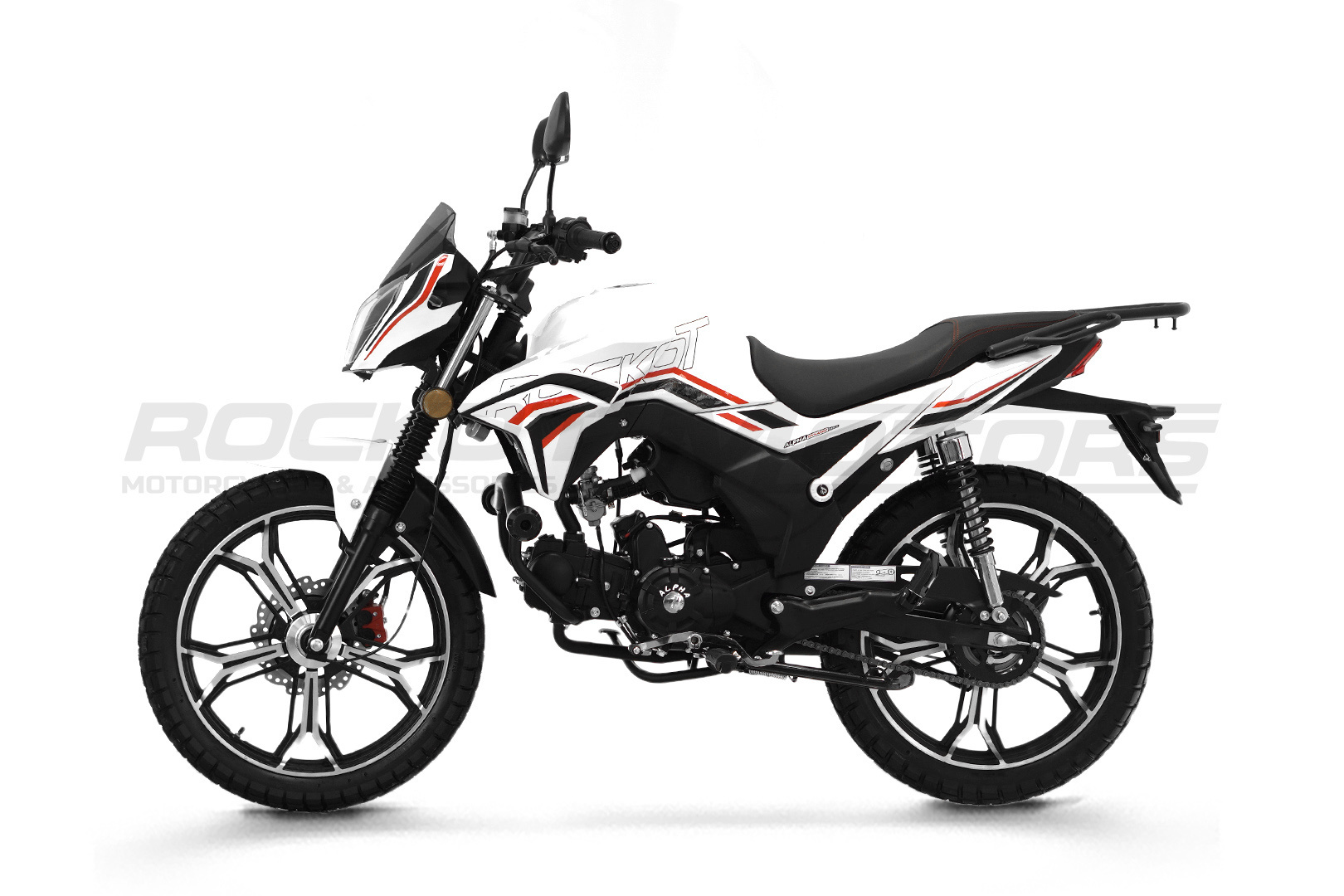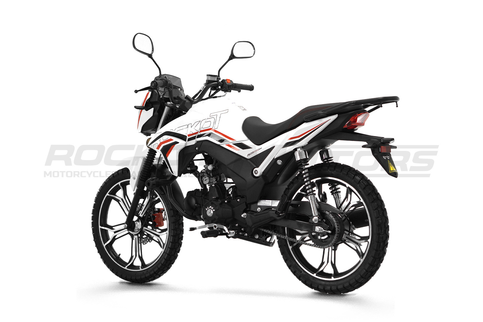 Не только дизайн колесных дисков мопеда ROCKOT ALPHA DYNAMIC отличает его от одноклассников, но и их размерность. Спереди и сзади установлены 18 дюймовые диски. Данное решение позволило увеличить высоту по седлу и сделать поездки более комфортными. На переднем и заднем колесах установлены шины размерностью 2.75-18 и 3.00-18 с универсальным типом протектора, который позволяет ездить по дорогам с любым покрытием.