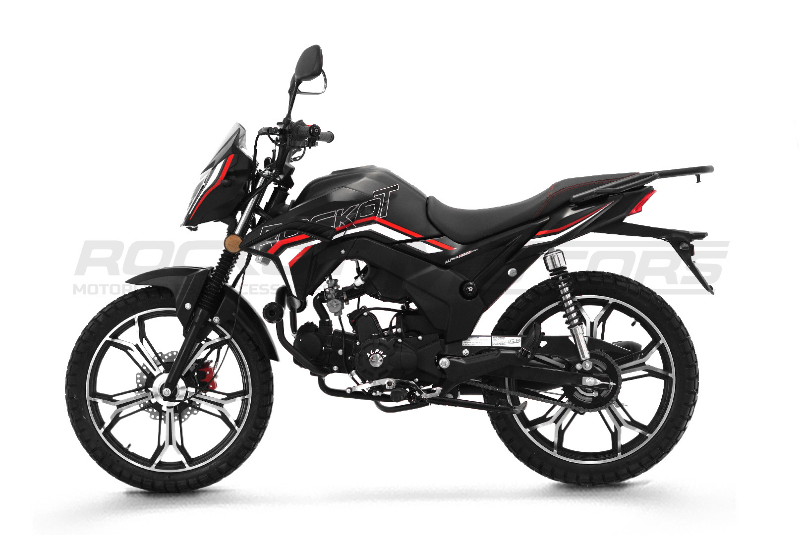 Не только дизайн колесных дисков мопеда ROCKOT ALPHA DYNAMIC отличает его от одноклассников, но и их размерность. Спереди и сзади установлены 18 дюймовые диски. Данное решение позволило увеличить высоту по седлу и сделать поездки более комфортными. На переднем и заднем колесах установлены шины размерностью 2.75-18 и 3.00-18 с универсальным типом протектора, который позволяет ездить по дорогам с любым покрытием.