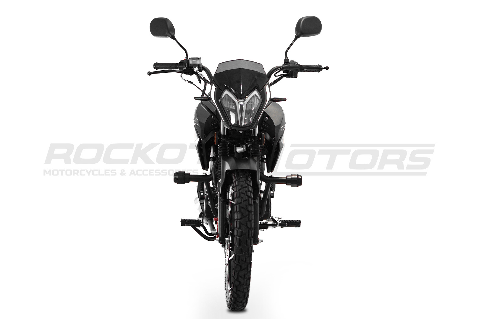 В основе мопеда лежит прочная сварная трубчатая рама хребтового типа, которая уже отлично себя зарекомендовала на мопедах ROCKOT ALPHA CITY. В передней части мотоцикла установлены прочные дуги безопасности со слайдерами. Мопед рассчитан на езду водителя с пассажиром, его грузоподъемность равна 150 килограммам.