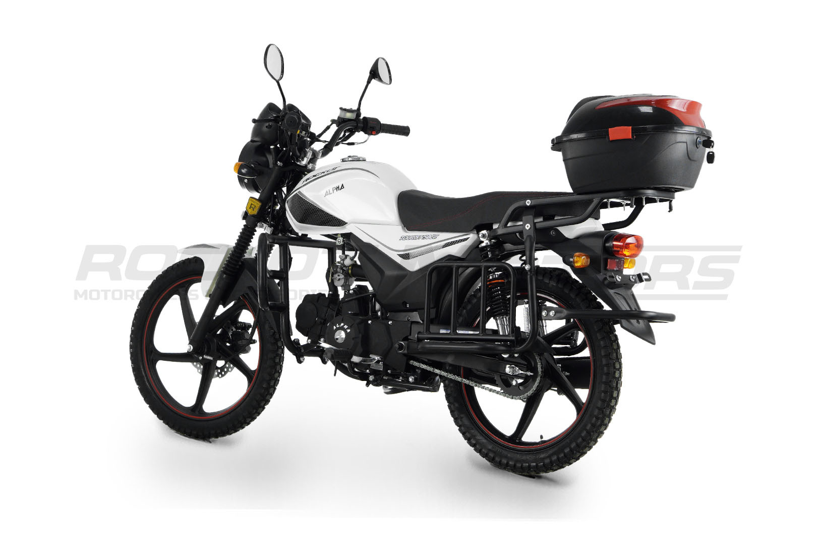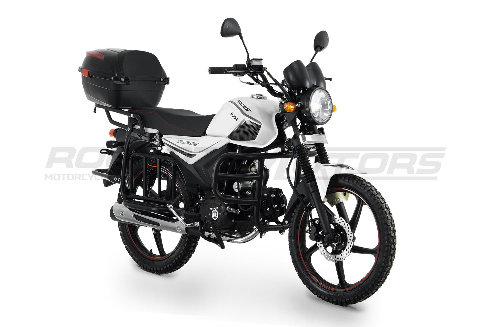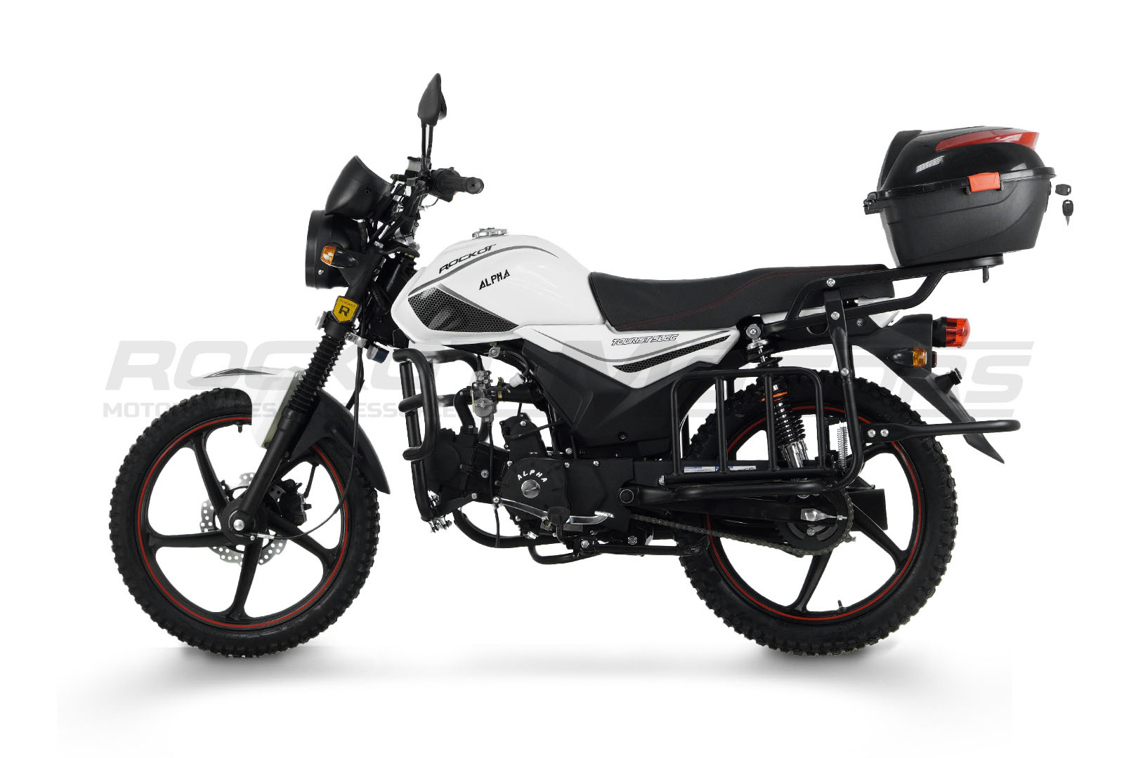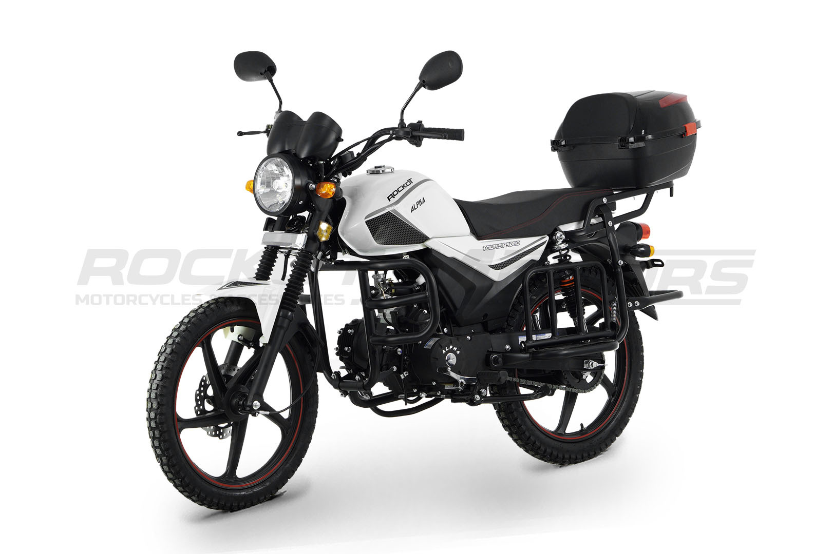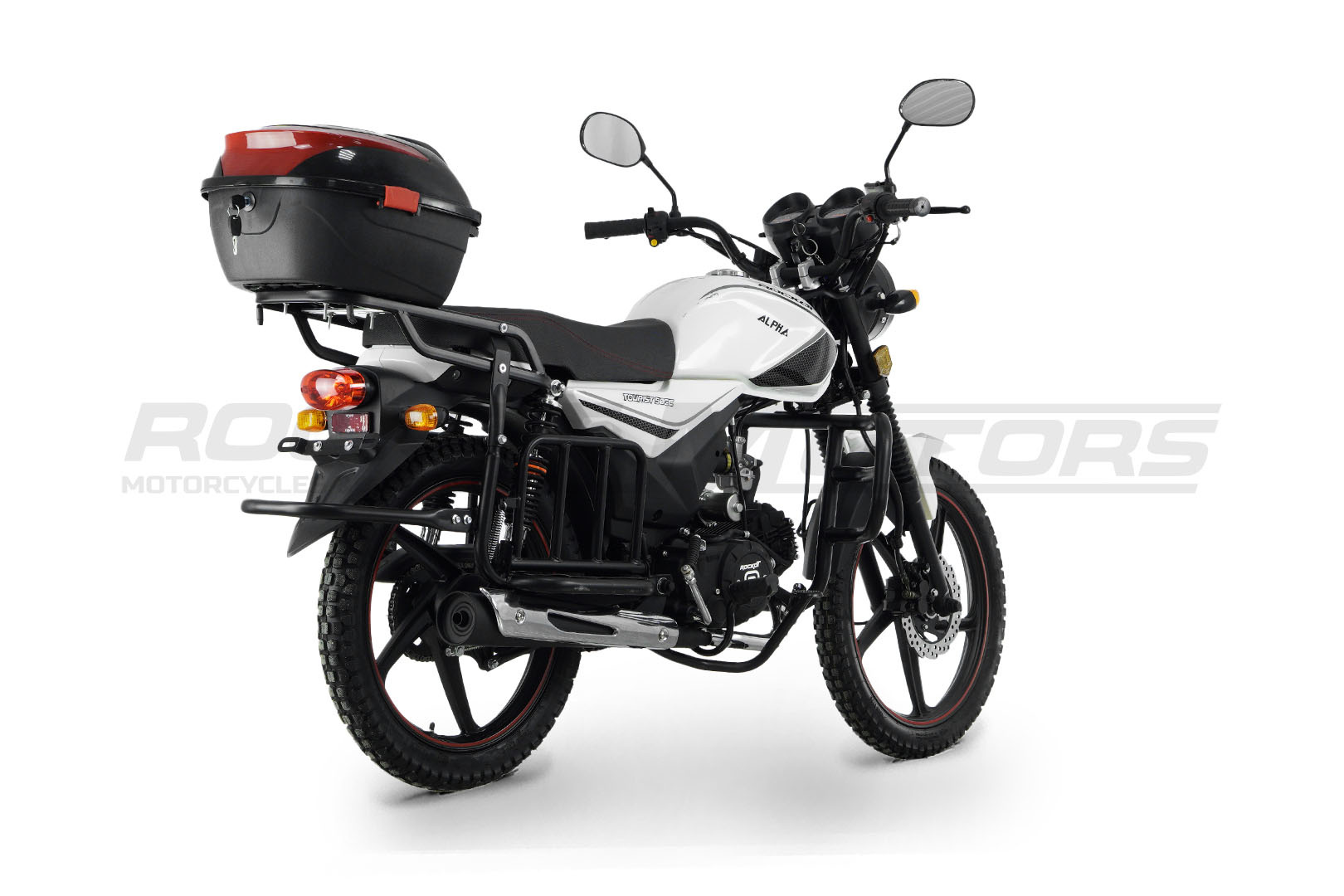 ROCKOT ALPHA TOURIST M-12 (белый глянцевый) - мопед способный преодолевать большие расстояния по дорогам с различным типом покрытия. Наличие предустановленной багажной системы, позволит перевозить большой объем багажа. Мопед способен развивать максимальную скорость до 90 км/ч. Объем топливного бака в 10 литров, способствует проезжать большие расстояния без дозаправки.