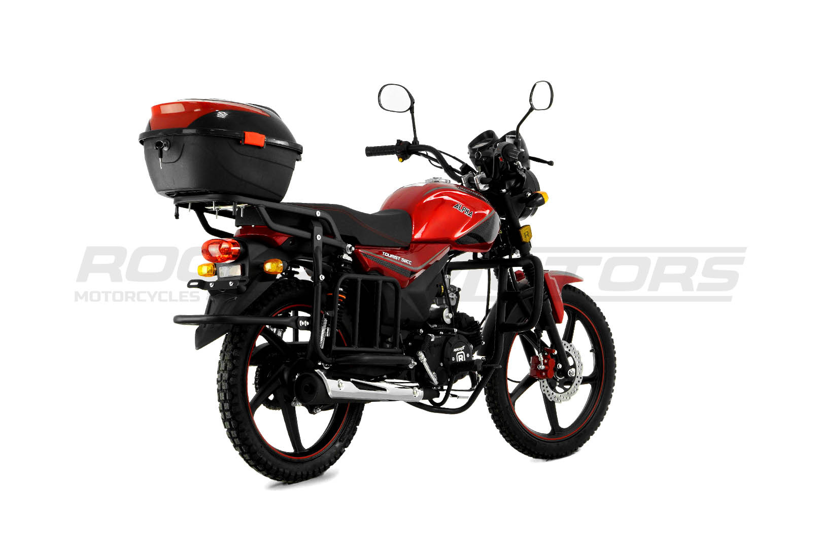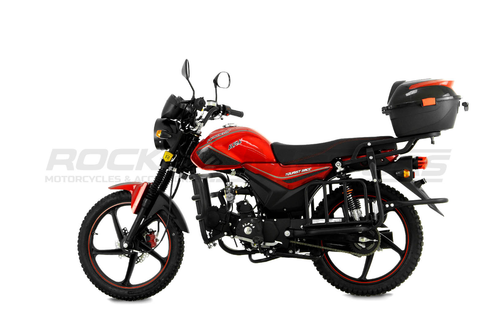ROCKOT ALPHA TOURIST M-12 (красный глянцевый) - мопед способный преодолевать большие расстояния по дорогам с различным типом покрытия. Наличие предустановленной багажной системы, позволит перевозить большой объем багажа. Мопед способен развивать максимальную скорость до 90 км/ч. Объем топливного бака в 10 литров, способствует проезжать большие расстояния без дозаправки.