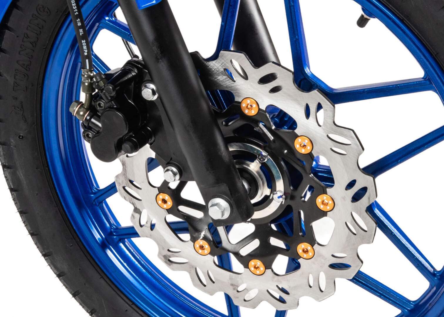 Работа подвески мотоцикла организована на базе стандартных компонентов: передней телескопической вилки и двух задних амортизаторов.