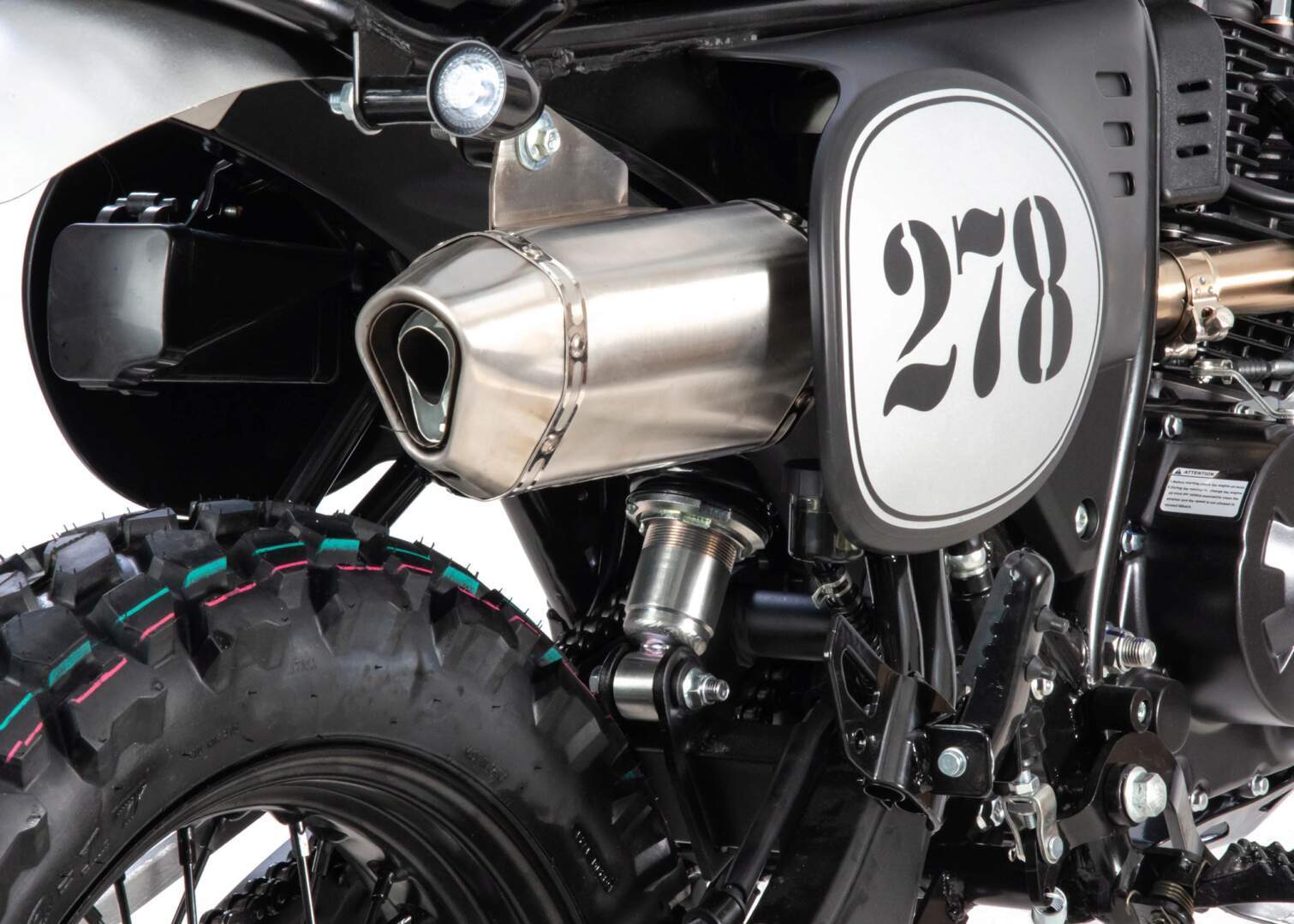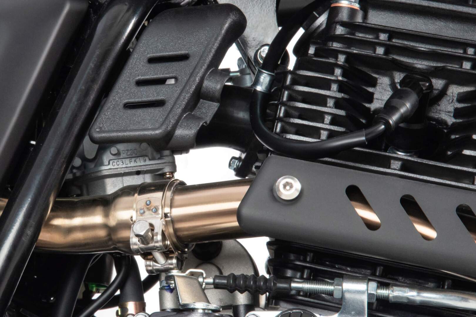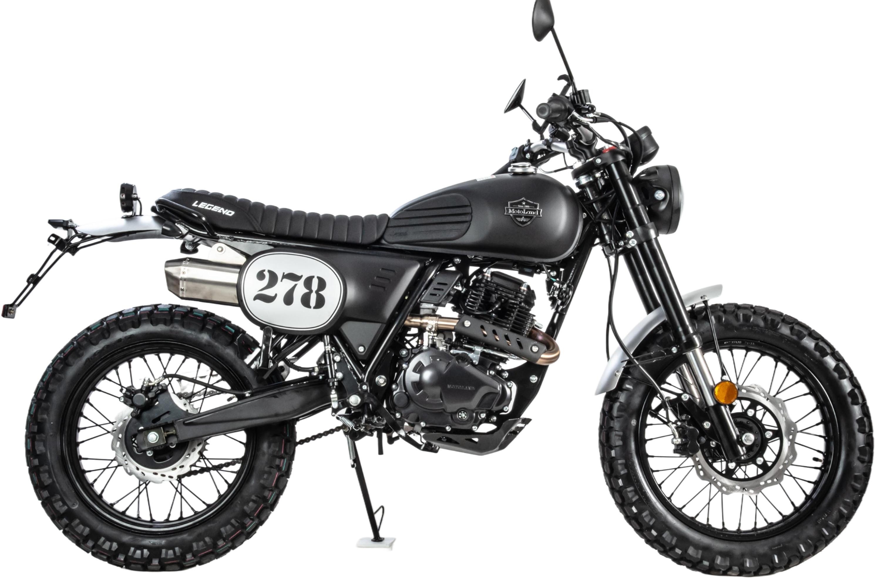 Мотоцикл оснащен двигателем 175FMM-5 (баланс. вал) с 6 ступенчатой коробкой передач, мощностью 25 л.с. Впуск оснащен карбюратором Keihin PZ30, выпуск – титановым выхлопом от Motoland.