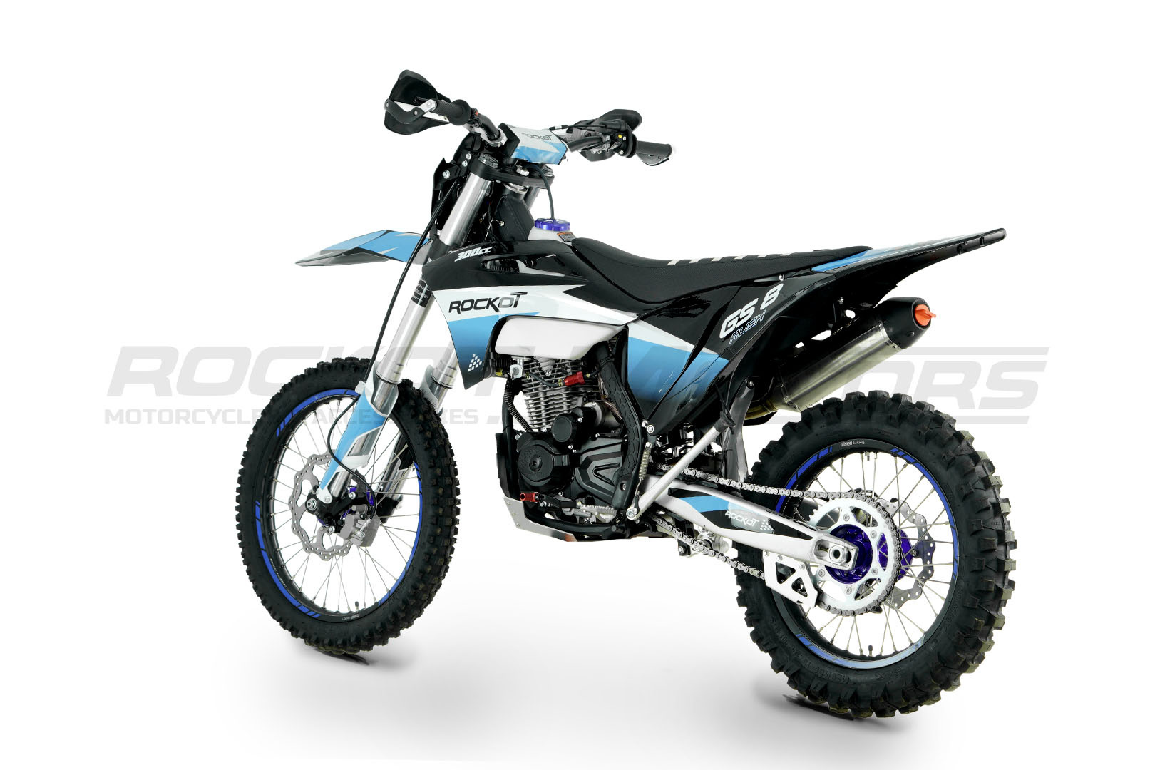 ROCKOT GS 8 RUSH – полноразмерный эндуро мотоцикл с мощным двигателем воздушно-масляного охлаждения. Данная модель вполне заслуженно является одной из лучших, среди эндуро мотоциклов предназначенных для гонок класса «Lite» и способна привезти новичка на «тумбу победителей».