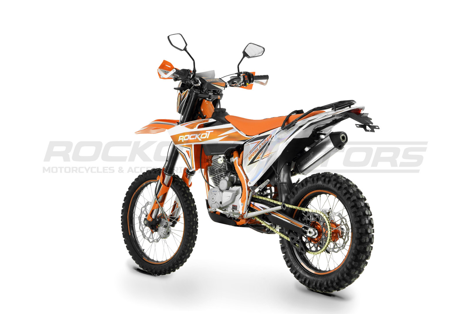 Эндуро мотоцикл ROCKOT HIGHLANDER оснащен всем необходимым для езды по дорогам общего пользования: