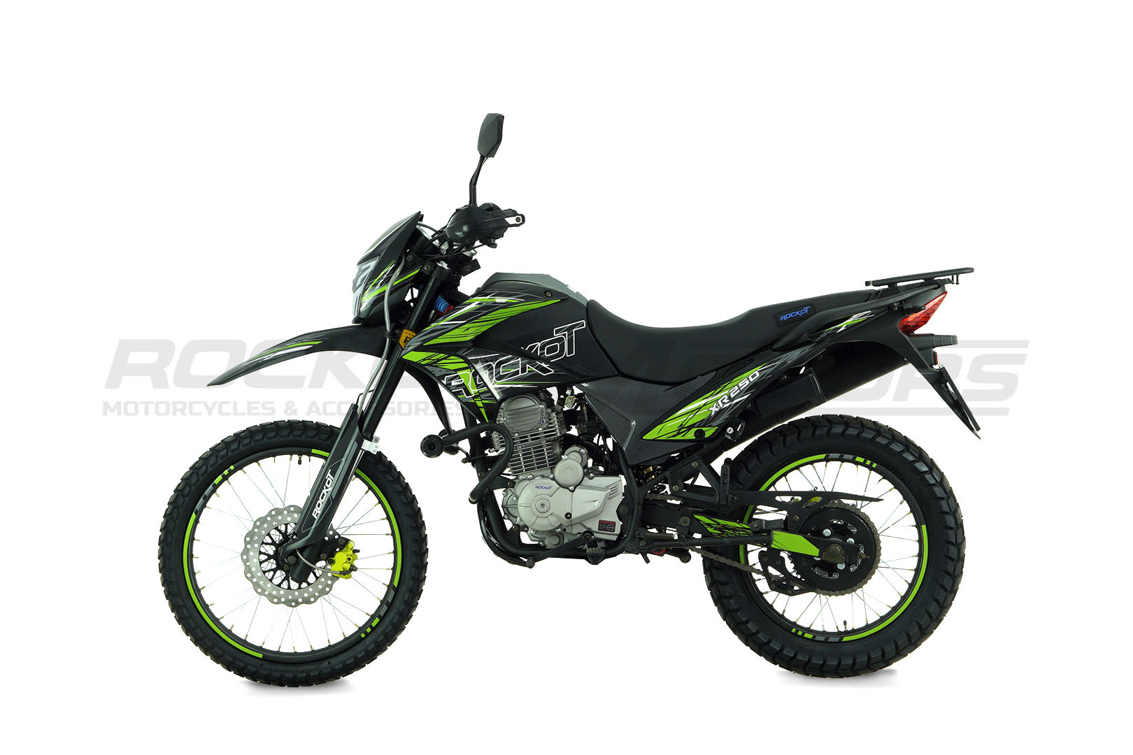 ROCKOT XR250 - это современный софт-эндуро мотоцикл в ярком уникальном дизайне. На выбор предоставляются мотоциклы в трех вариантах расцветки: оранжевой, зеленой и красной.