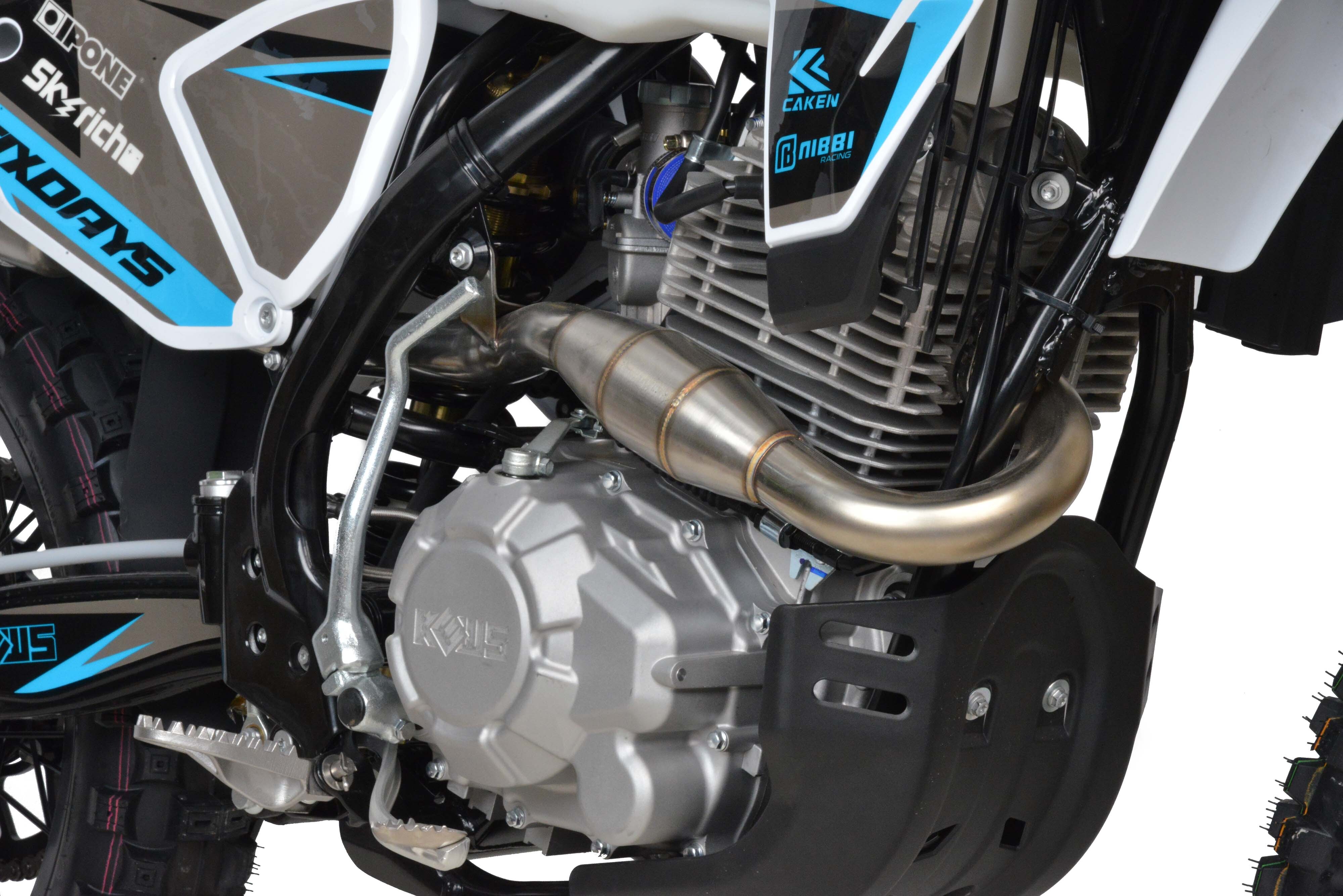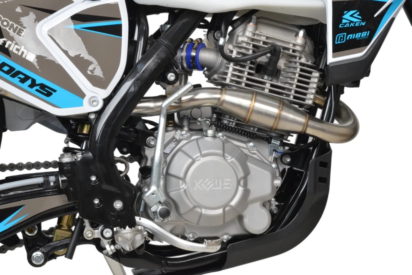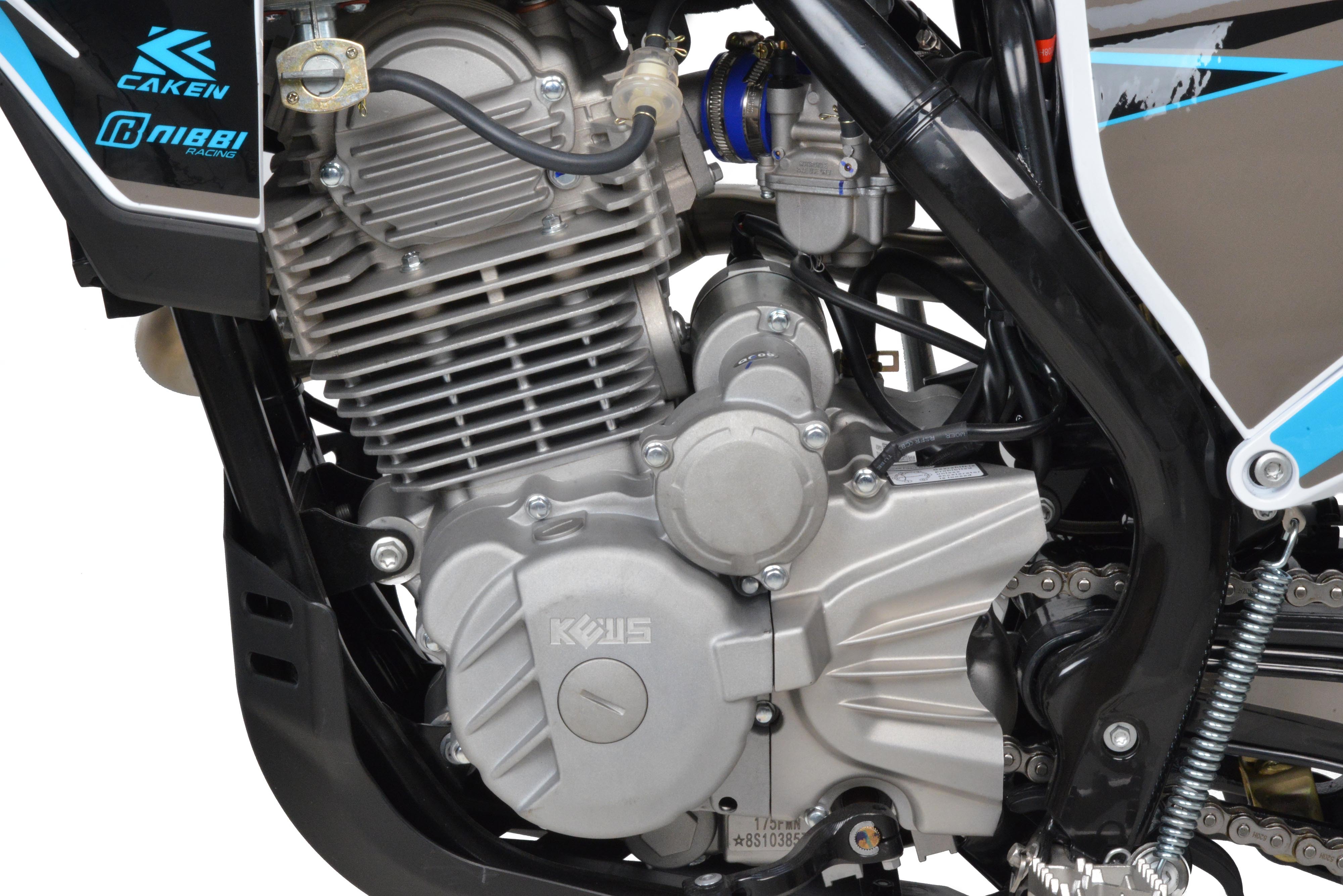 Kews K 23 оснащен мощным мотором 175FMN объемом 300 см3 с воздушным охлаждением. Это обеспечивает отличную производительность и надежность, а также позволяет мотоциклу уверенно справляться с разными типами трасс и сложными условиями.
