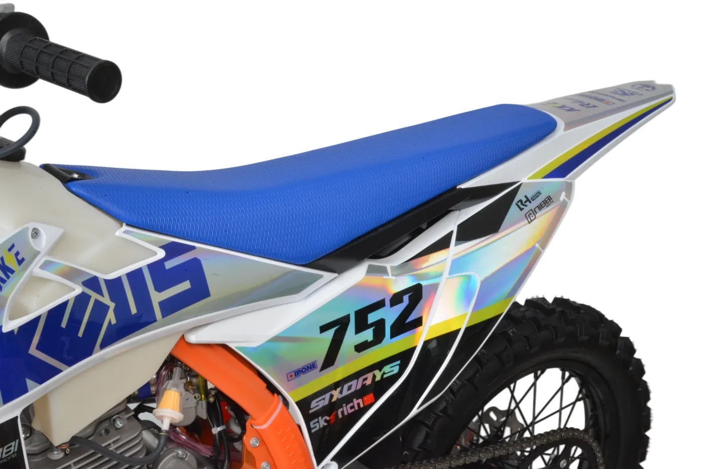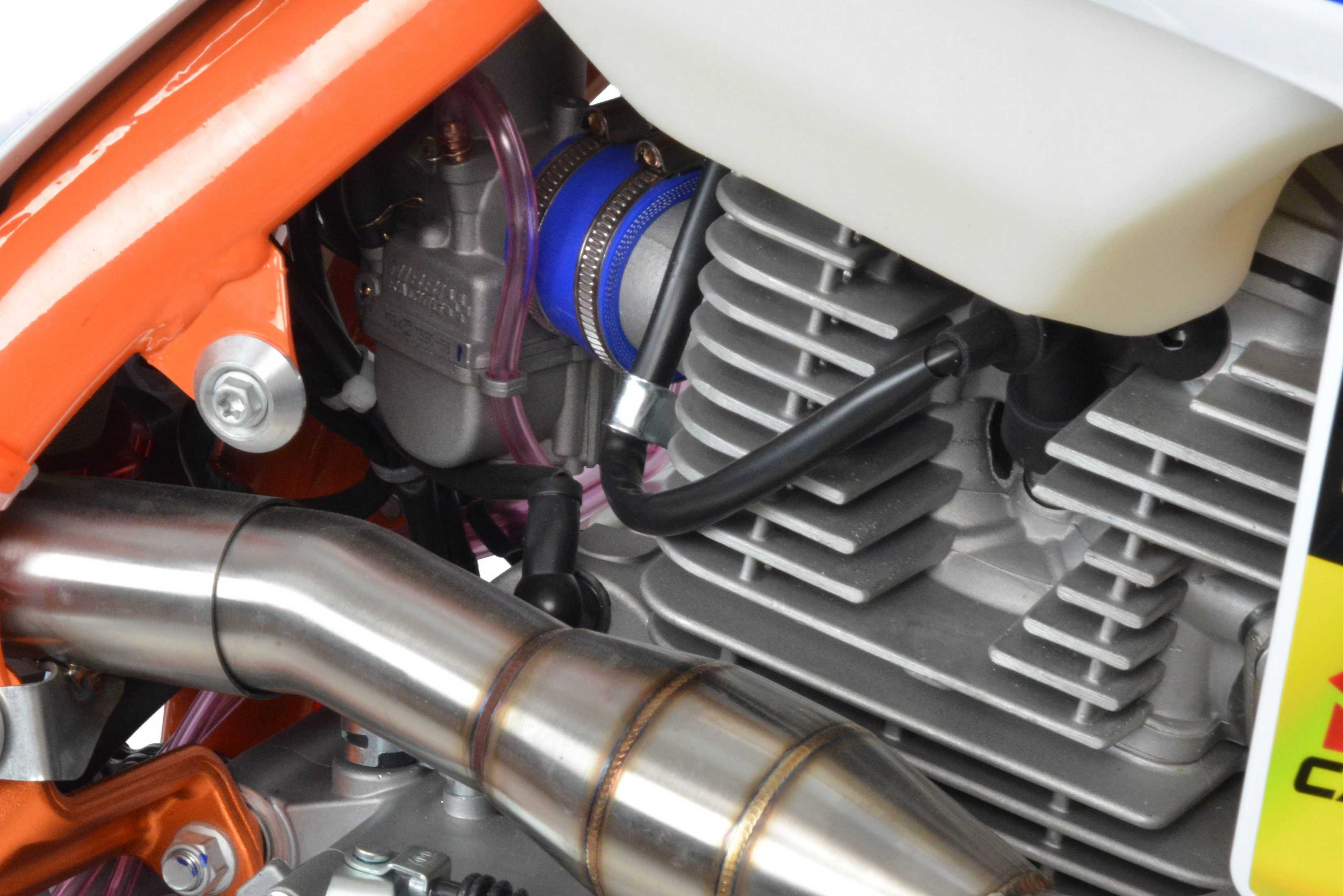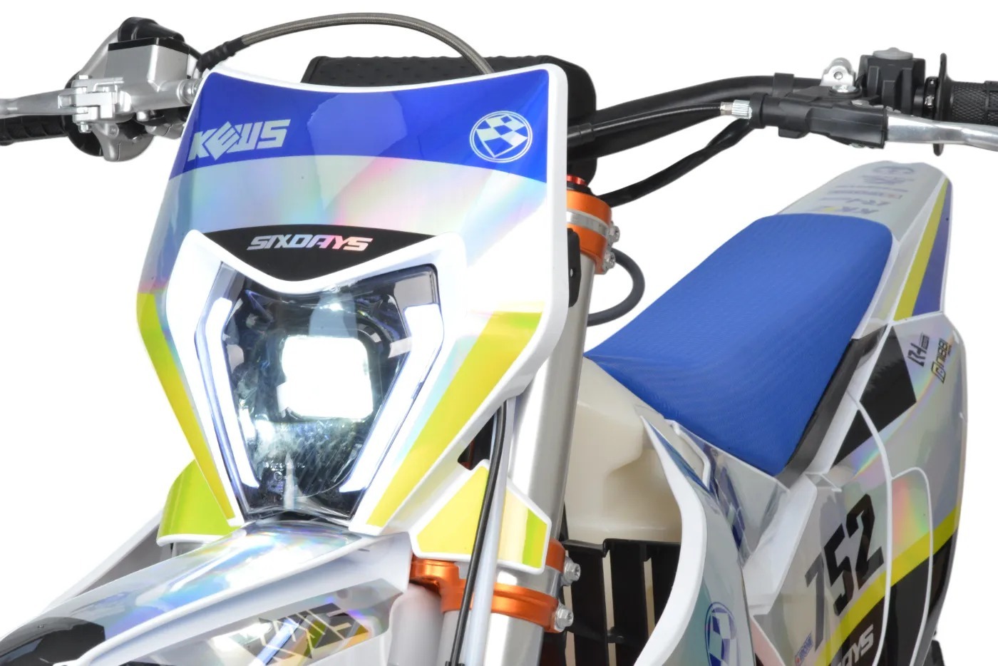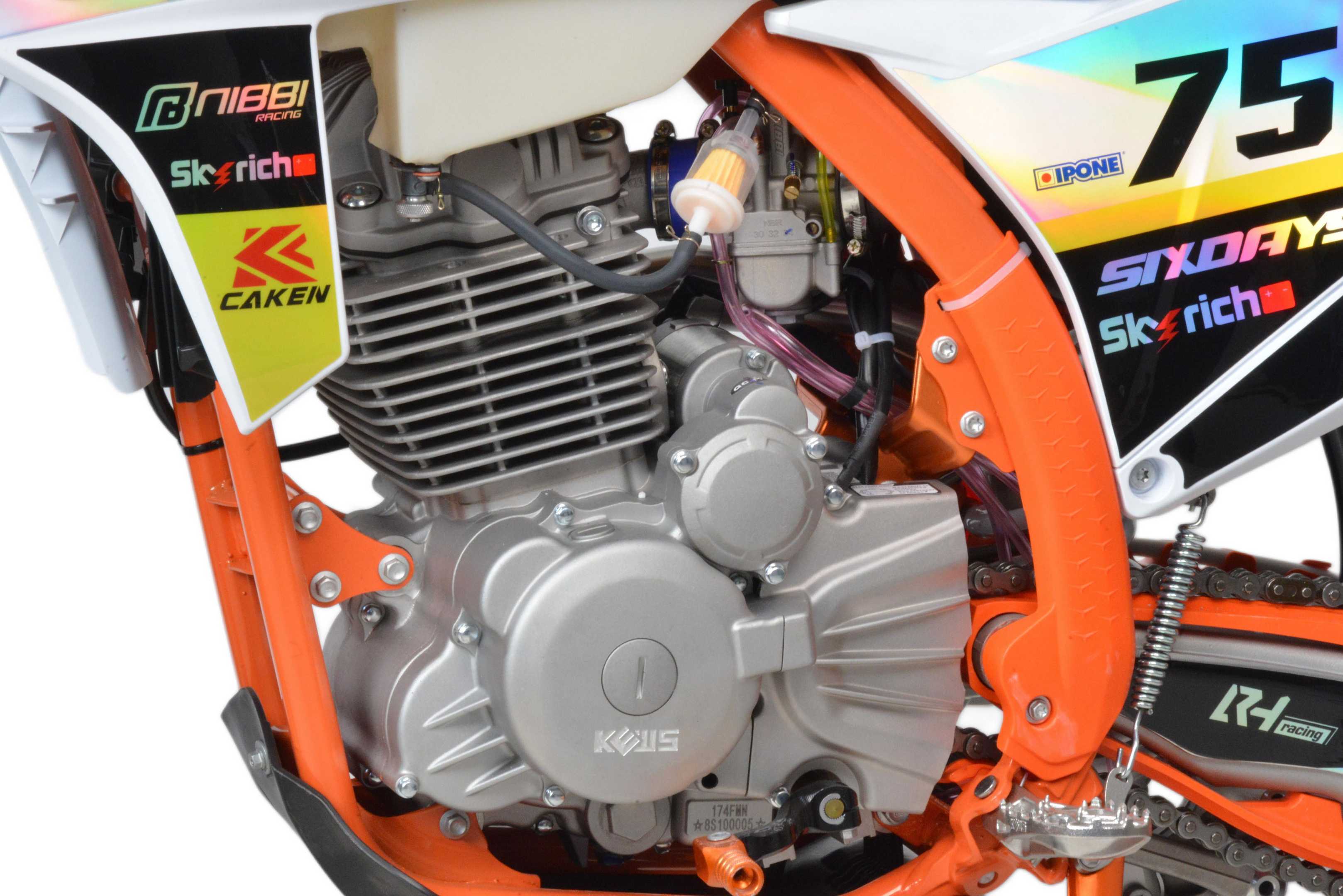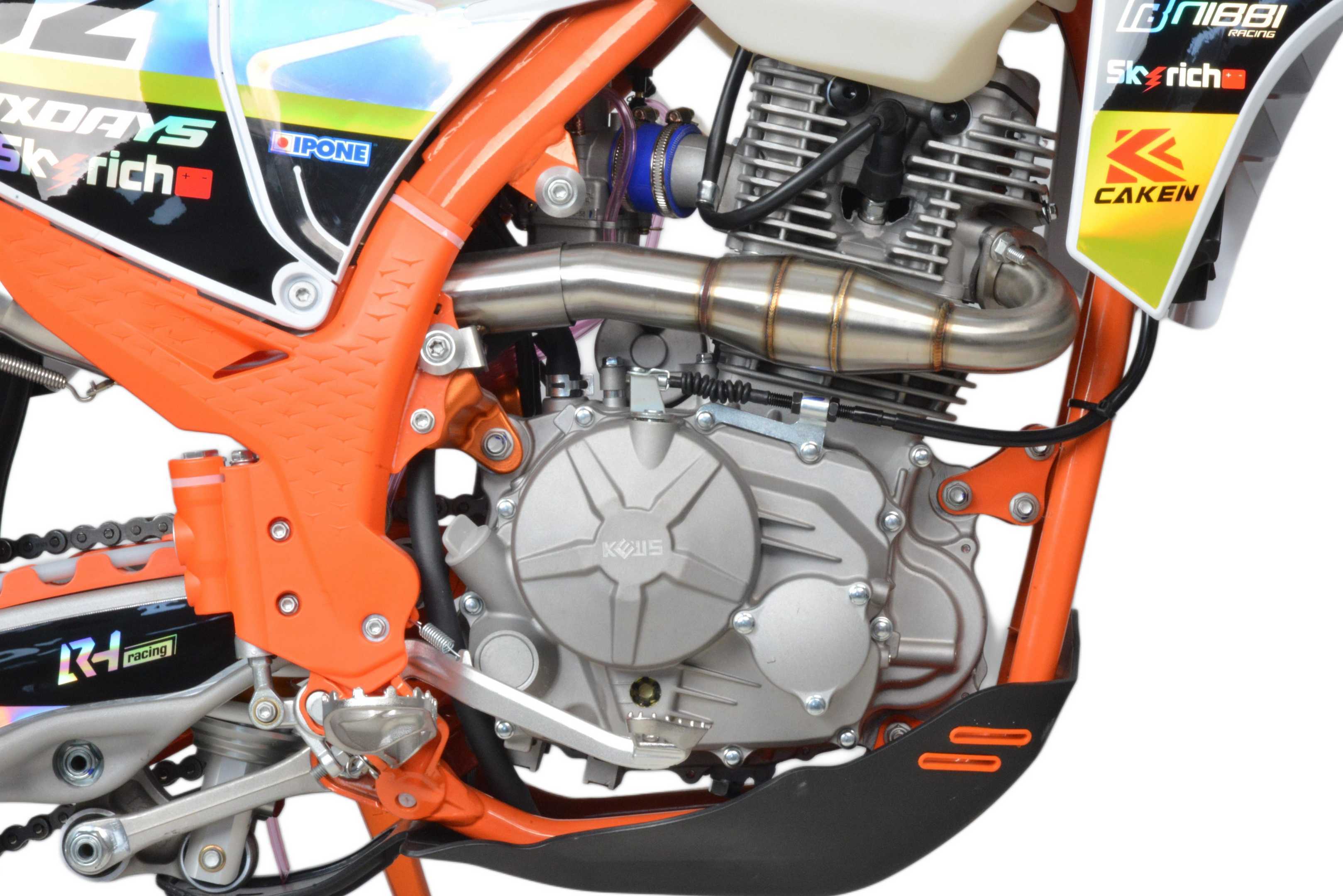 Kews K 24 оснащен мощным мотором 174 FMN NB300F объемом 300 куб. см с воздушным охлаждением. Это обеспечивает отличную производительность и надежность, а также позволяет мотоциклу уверенно справляться с разными типами трасс и сложными условиями.