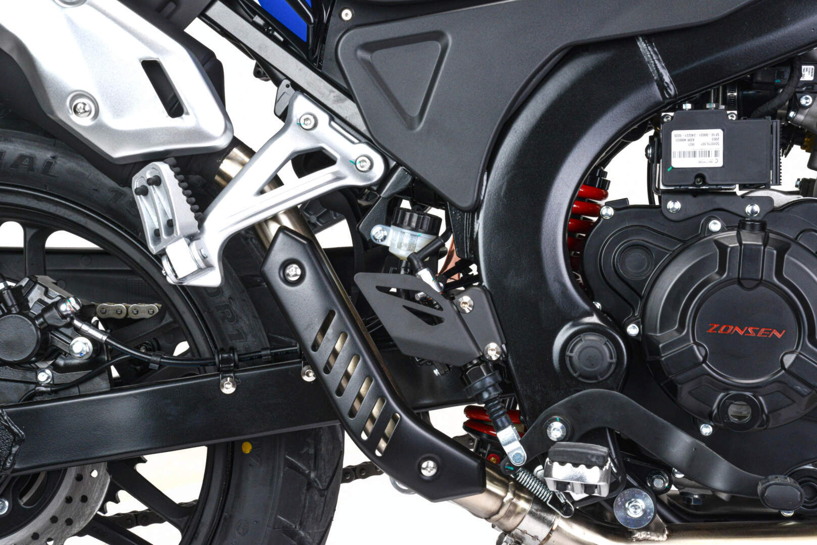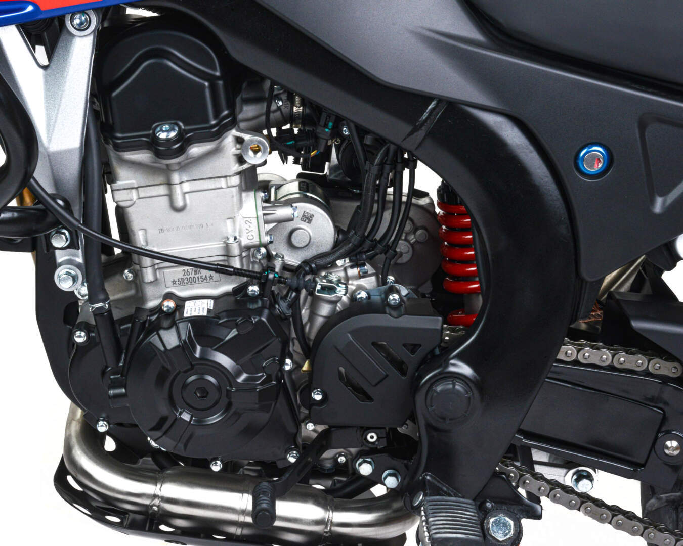 Система подготовки топлива — инжекторная, что позитивно отражается на потенциале использования мотоцикла. Мотоцикл с ПТС, а значит на нём можно разъезжать по дорогам общего пользования. Также его можно эксплуатировать в тяжёлых условиях езды, ведь благодаря тщательно продуманной эргономике и регулируемой подвеске он без проблем преодолевает труднопроходимые участки с грязью, пылью и песком. Ведёт себя собранно и не скачет при открытии газа. У мотоцикла — современная -LCD приборная панель, качественная LED-оптика, что добавляет удобства при езде в тёмное время суток, а также топливныq бак с большим объёмом и, соответственно, увеличенным запасом хода без дозаправки. В базе присутствуют дуги, защита картера/