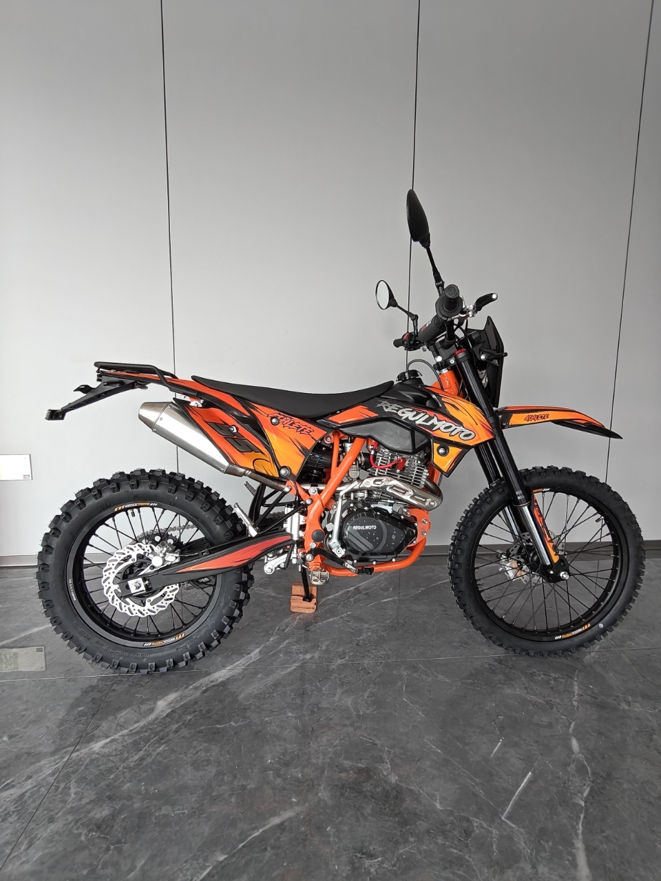 Regulmoto Athlete – доступный широкому кругу мотолюбителей мотоцикл многоцелевого назначения. Данную модель отличают небольшая колесная база и небольшой собственный вес, что позитивно сказывается на простоте управления техникой на бездорожье. Купить мотоцикл REGULMOTO Athlete вы сможете, оформив онлайн-заявку на сайте или связавшись с менеджерами нашей компании.В раме байка устанавливается надежный 4-тактник Zongshen 175FMM-3A воздушного охлаждения с электростартером и 5-ступенчатой трансмиссией. Двигатель, работающий с карбюратором Nibbi PE30, , что для такого компактного аппарата больше чем достаточно.