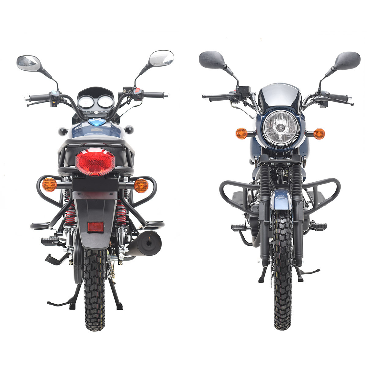 Широкое удобное сиденье, большие пассажирские подножки, дуги безопасности, кожух защиты цепи и задний багажник недвусмысленно говорят об утилитарном назначении мотоцикла. И этом остаточно высокий клиренс Regulmoto SK200 и покрышки «dual-sport» позволят с комфортом использовать мотоцикл на грунтовых дорогах и легкой пересеченной местности в поездках на природу, на рыбалку или в лес.