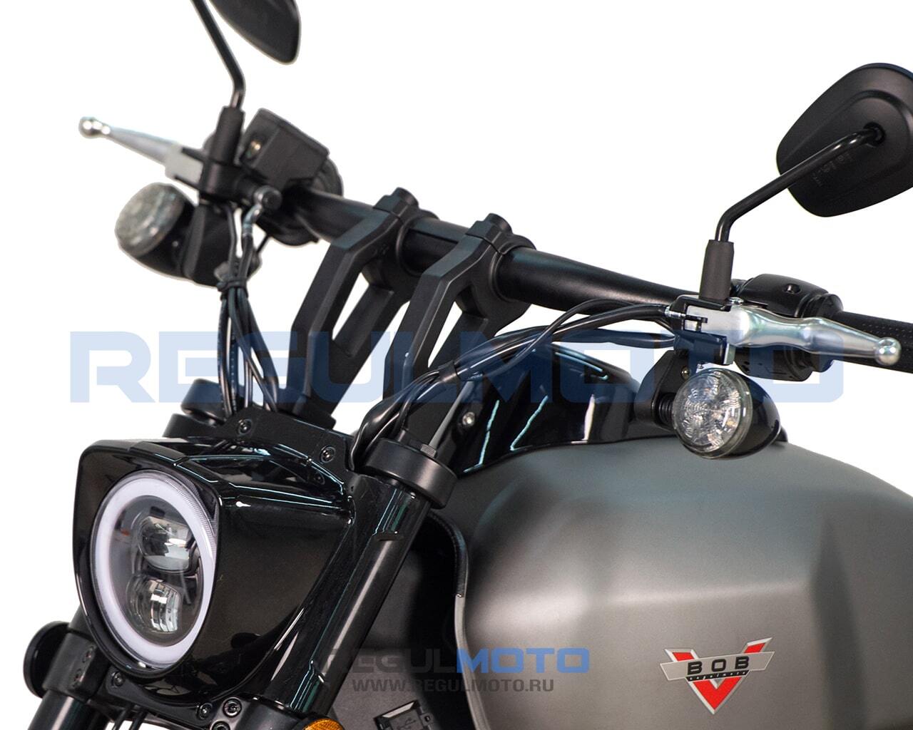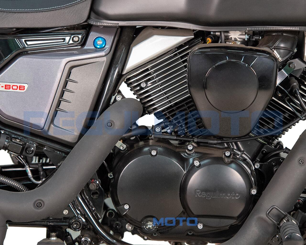 Regulmoto V-Bob выделяется своим низким мускулистым силуэтом и звуком инжекторного двухцилиндрового V Twin, который исходит из двойного глушителя. Светодиодные фонари, USB-порт и АБС — все это уникальное оборудование в этом сегменте, которое здесь предлагается в стандартной комплектации. Легкий круизер, экономичный и доступный всем!V-BOB - мотоцикл, который с легкостью завоюет ваше сердце своим неповторимым стилем и наследием классической Harley-Davidson Fat Bob. Он обещает вам непревзойденную свободу и эксцентричность на дороге, в то время как инжекторный V-образный 250-кубовый двигатель является источником невероятной мощности и энергии.