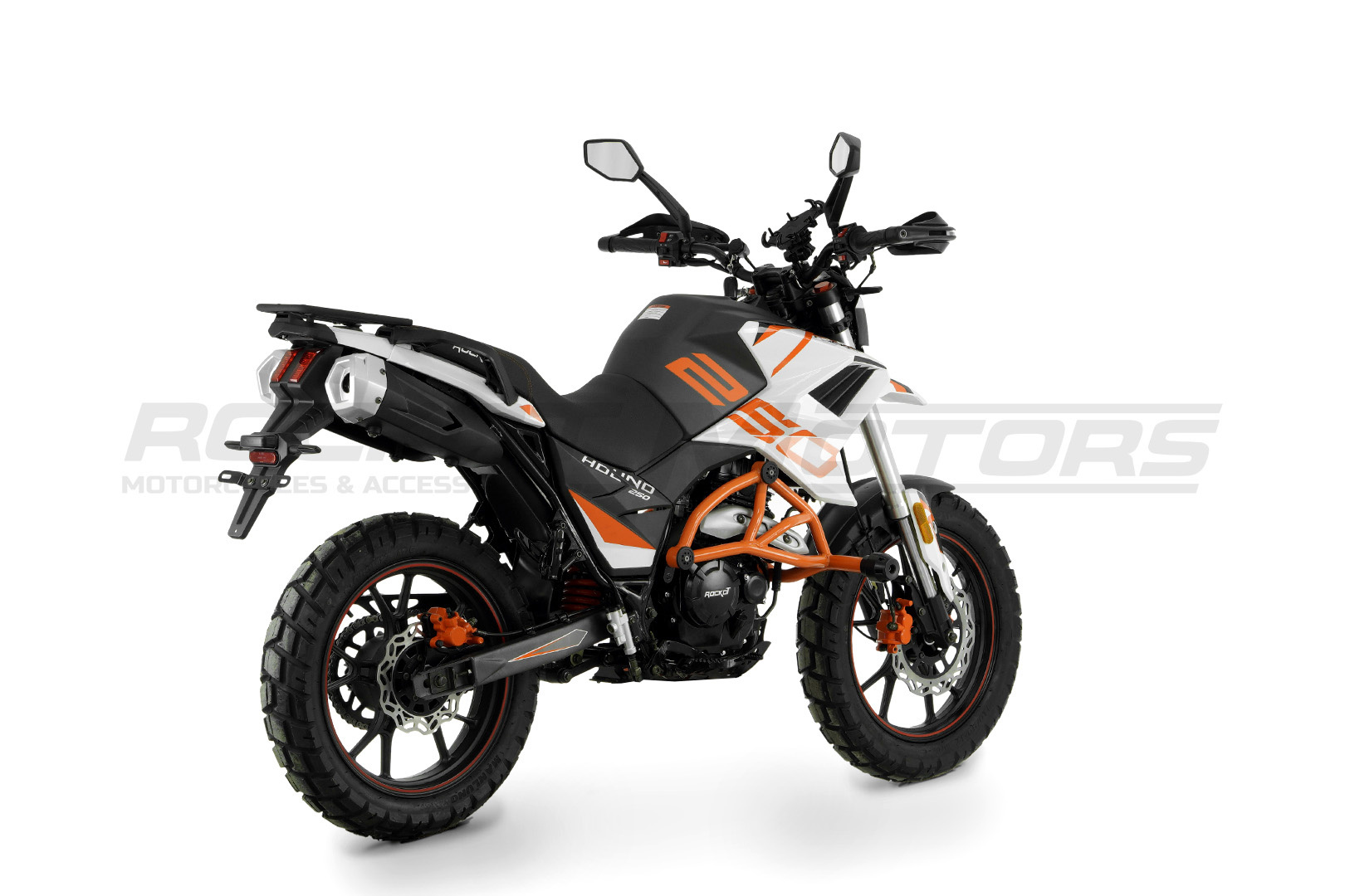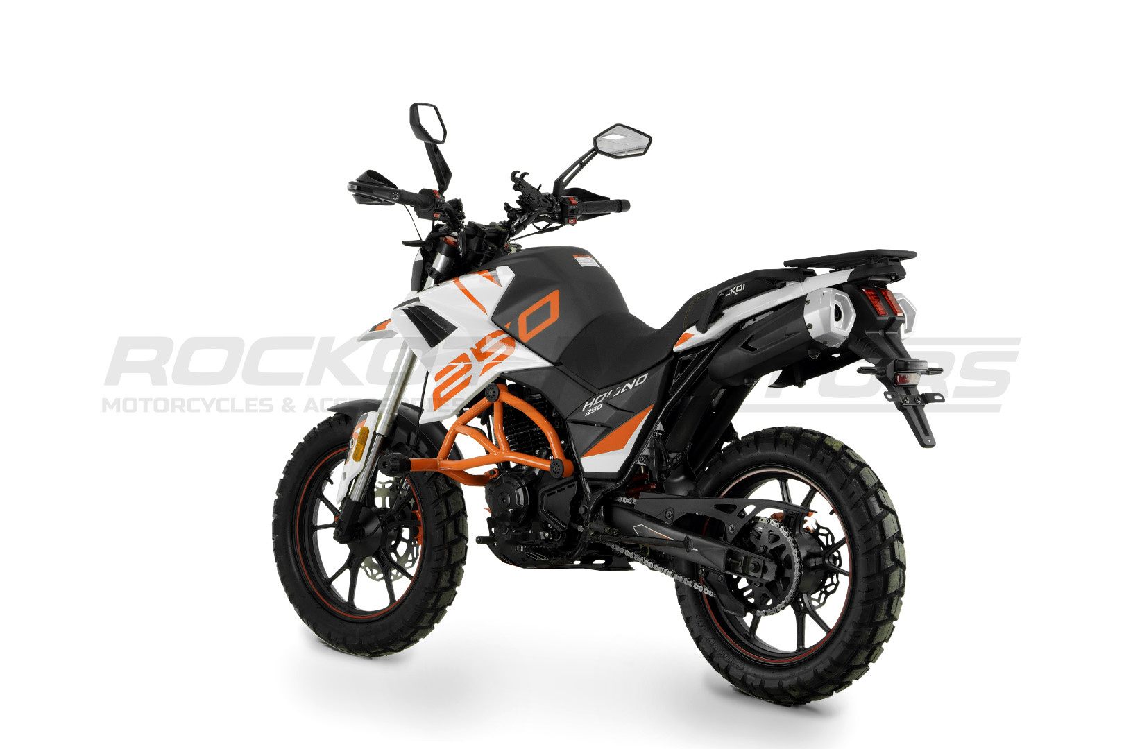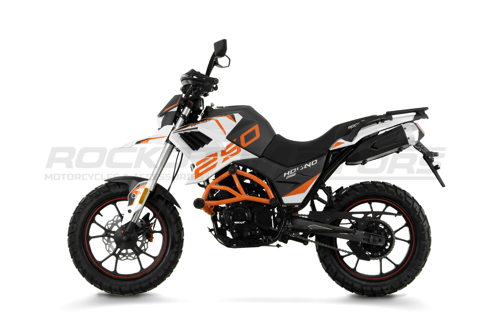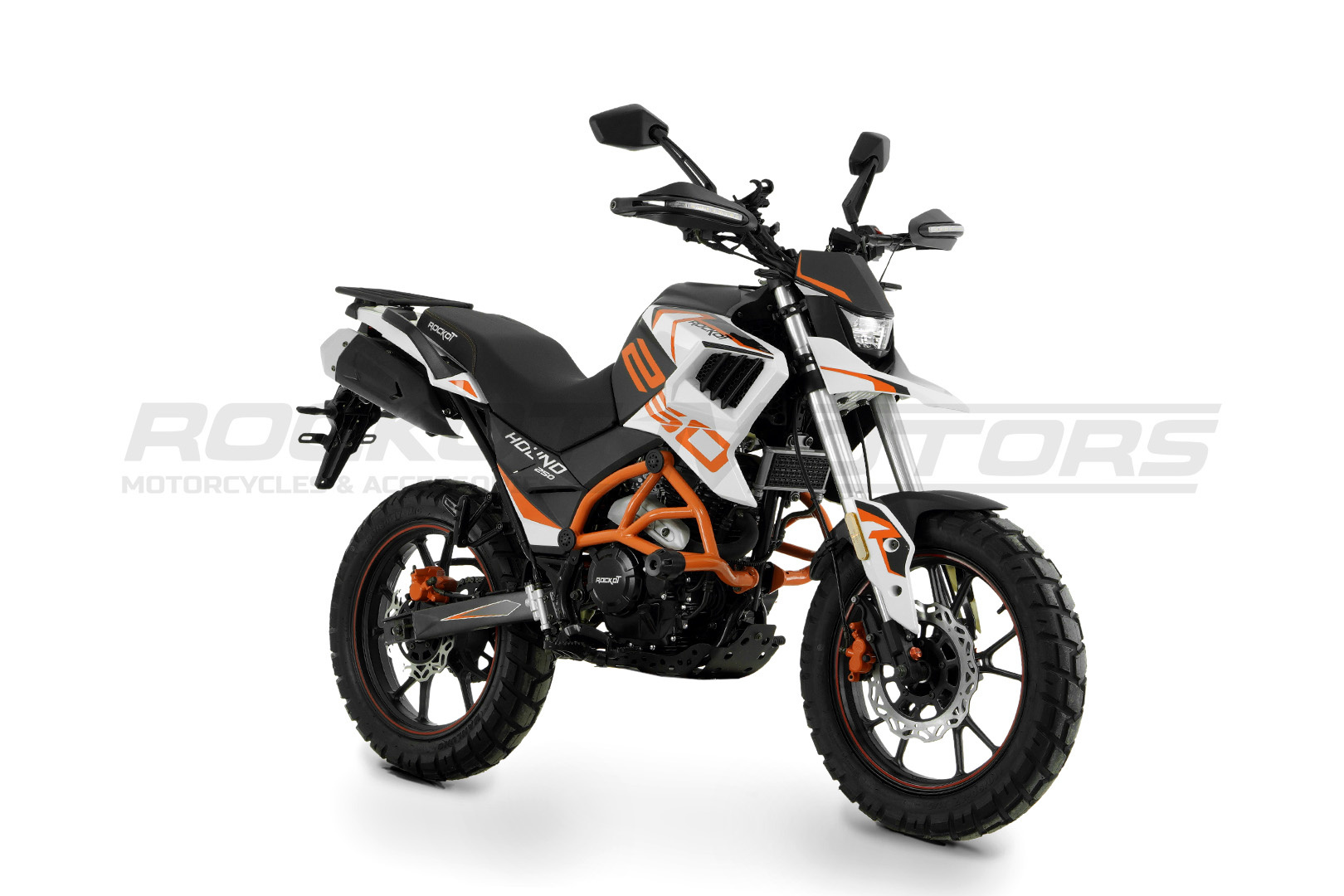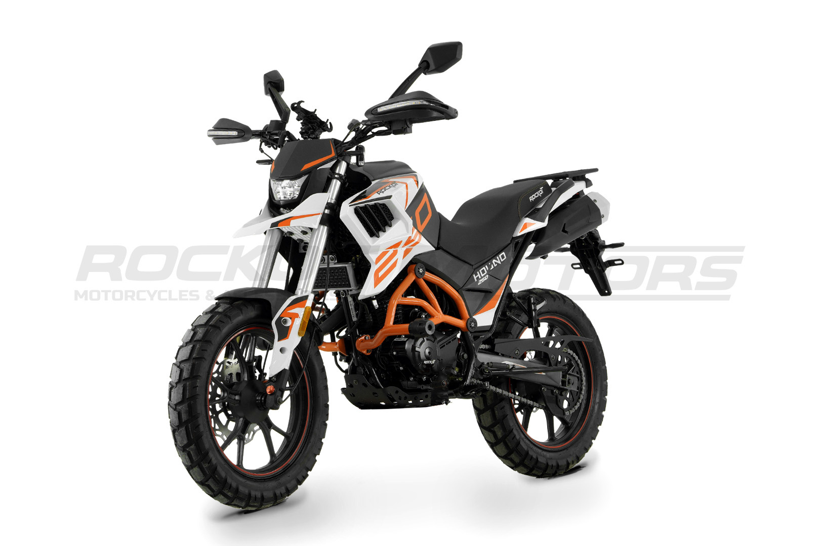 ROCKOT HOUND 250 (бело-оранжевый), благодаря своему уникальному дизайну, высокой мощности, свойствам дорожного и внедорожного мотоцикла - подойдет для каждого мотолюбителя, который не видит преград даже в отсутствии дорог. Высота по седлу в 820 мм позволит комфортно управляться мотоциклом даже невысоким райдерам.