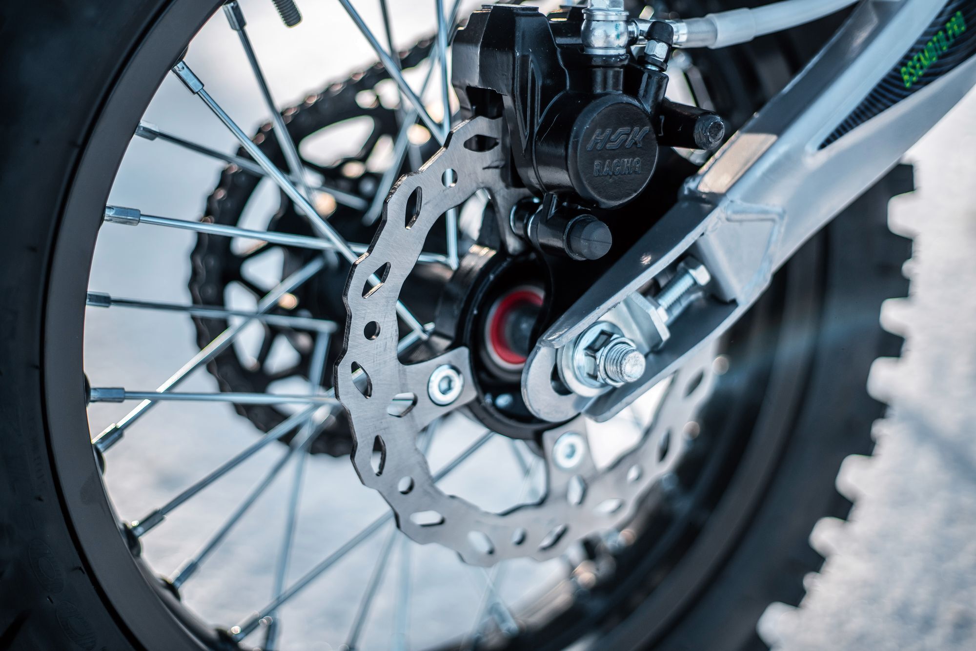 Питбайк оснащен 4-ступенчатой механической трансмиссией. Запуск мотора осуществляется при помощи электростартера или кик-стартера. Подвески с большими ходами: передняя — телескопическая вилка перевёрнуто типа, задняя-моноамортизатор. "Злая" резина, Мощная тормозная система HSK Racing, японские колесные подшипники NTN, усиленная цепь 428 Gold, защита мотора — питбайк полностью укомплектован всем необходимым для покатушек и гонок.