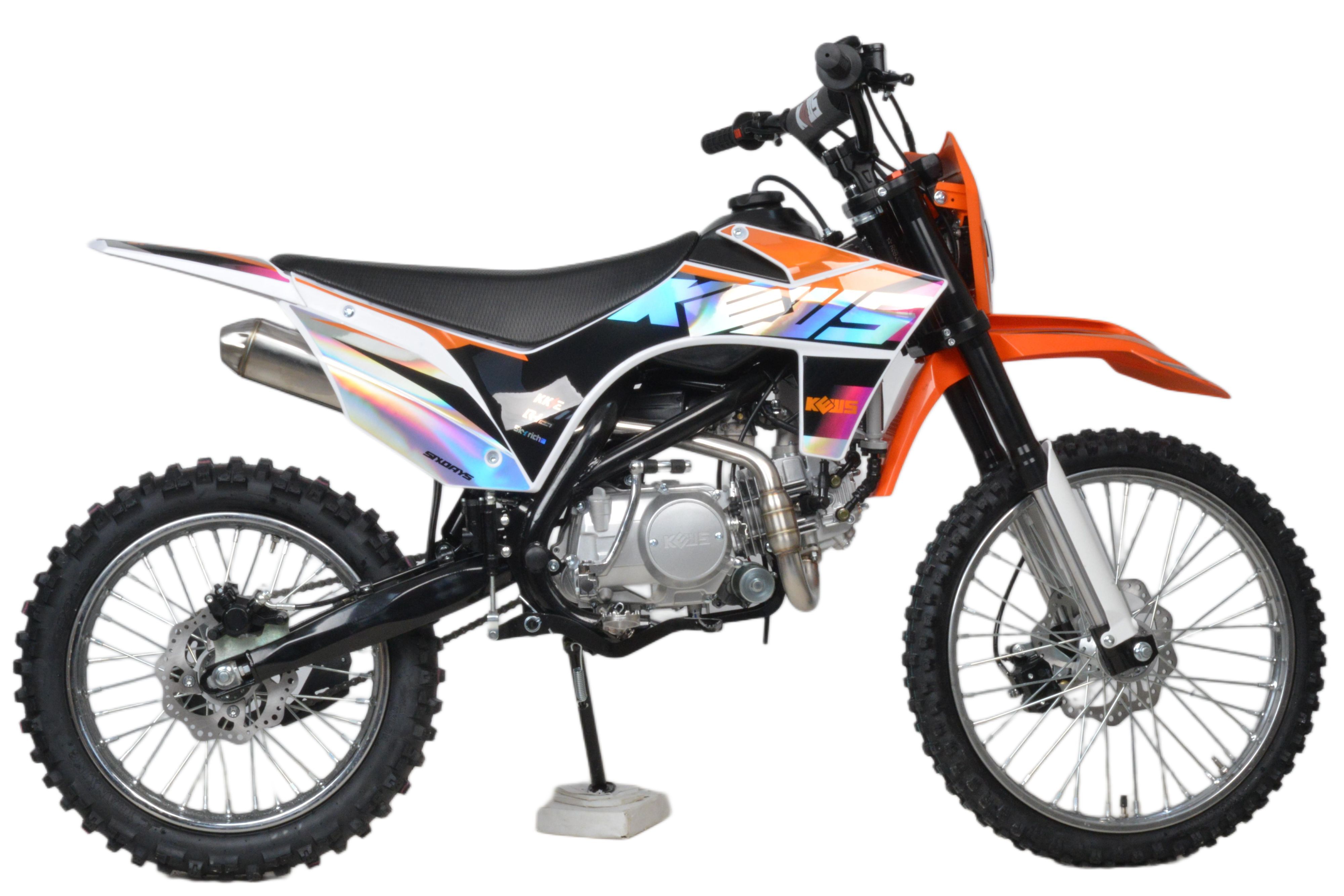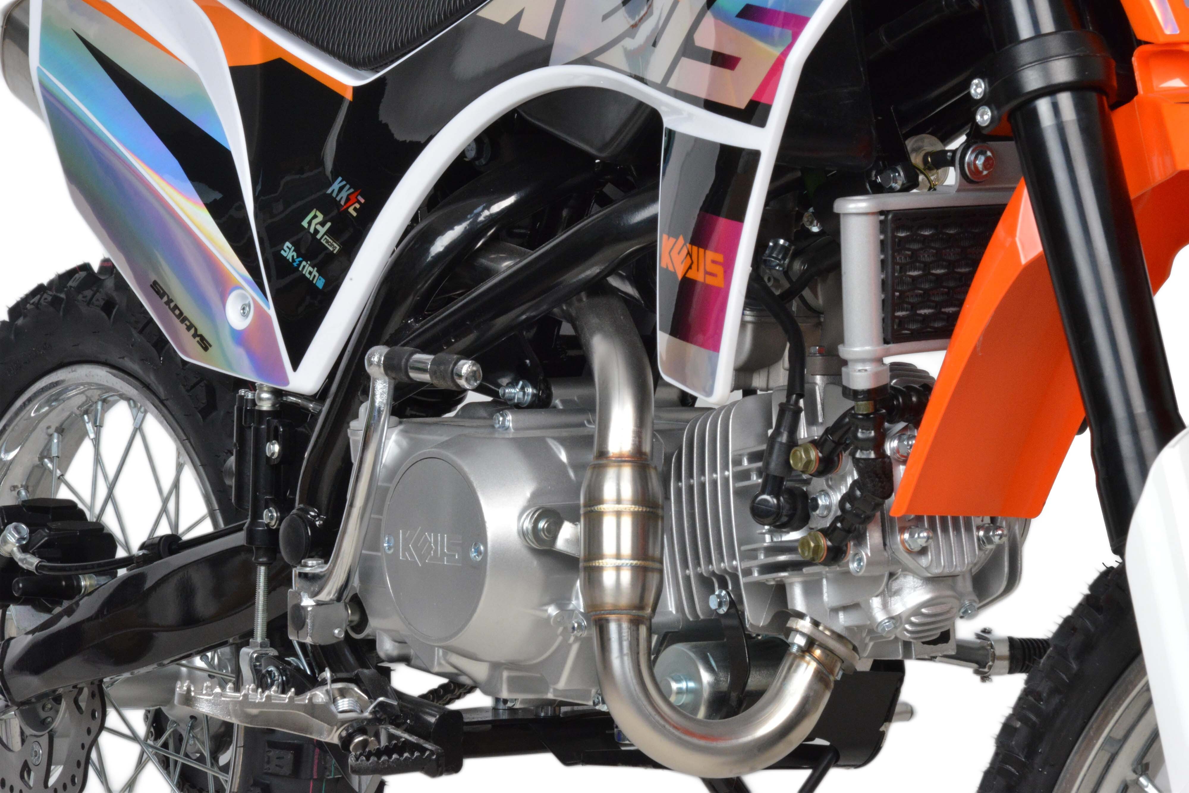 Питбайк Kews K61 140 E 19/16 идеален для поездок по грунтовым дорогам и бездорожью. Хорошо чувствует себя на мягком и среднем грунте, разгоняется до 110 км/ч. Оснащён спортивными траверсами, весит всего 90 кг.