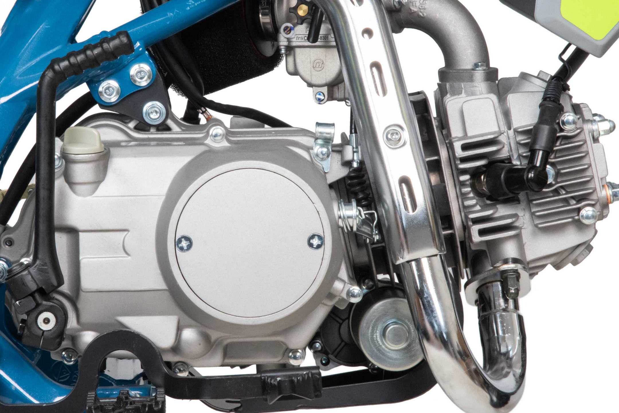 Питбайк оснащён карбюратором с фильтром нулевого сопротивления Nibbi PE n19 и одноцилиндровым четырёхтактным двигателем с воздушным охлаждением. Надёжный мотор 153FMI мощностью 8 л. с. и объемом 125 см³.