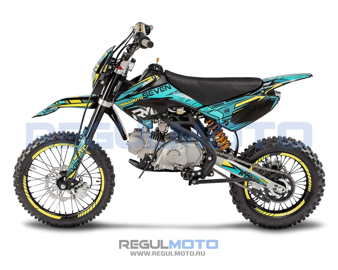 Питбайк Regulmoto SEVEN – одна из самых популярных моделей в линейке малокубатурной офф-роад мототехники нашей компании. Надежный и неприхотливый аппарат для покорения окрестного бездорожья доступен широкому кругу мотолюбителей и подойдет как детям и подросткам, так и взрослым.Силовая установка питабйка базируется на хорошо известном экспертам и энтузиастам мотоциклетном моторе YX139FMB, который работает в паре с карбюратором Nibbi PE19. Этот «кабовский» 4-тактник воздушного охлаждения с рабочим объемом 125 см3 и 4-ступенчатой трансмиссией оснащается электростартером, что делает эксплуатацию техники более комфортной. Также для запуска двигателя можно задействовать привычный рычаг кик-стартера.