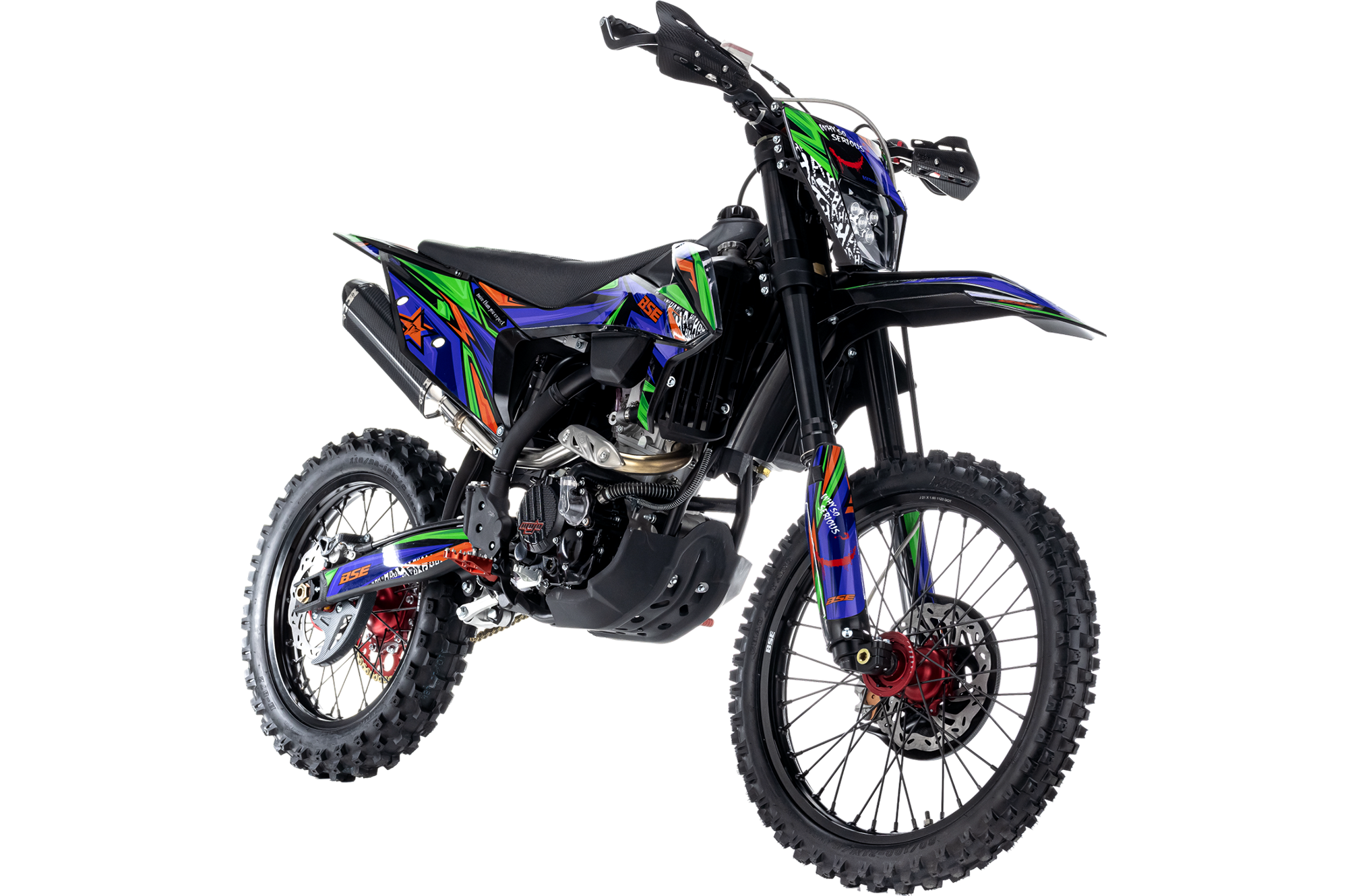 Ещё одна особенность модели Т7 – стальная рама, которая полностью соответствует всем стандартам самого известного австрийского бренда мотоциклов для кросса и эндуро – KTM. Единая геометрия, эргономика, пропорции и углы вылета вилки. Высококачественная сталь, малый вес и большой запас прочности, идеальная развесовка. Мотоцикл оснащен легким алюминиевым подрамником, системой прогрессии и пластиковой защитой мотора. Установлен новый тип пластика, прочный, легкий и современный.