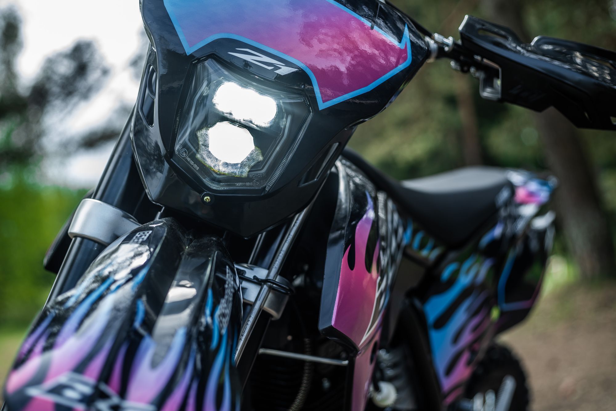 Z1 оснащен мощным, но в то же время послушным и отзывчивым мотором Zongshen 150 куб см с вертикальным расположением цилиндра, надежным карбюратором Nibbi и 5-ступенчатой механической трансмиссией. Запатентованная прочная стальная рама BSE, увеличенная колёсная база, вилка “перевертыш”, мощная тормозная система HSK Racing, внедорожная резина Yuanxing, колёса размером 19/16 позволят спокойно преодолевать легкий и средний уровень оффроуда. Препятствия, броды брёвна – Z1 все под силу.