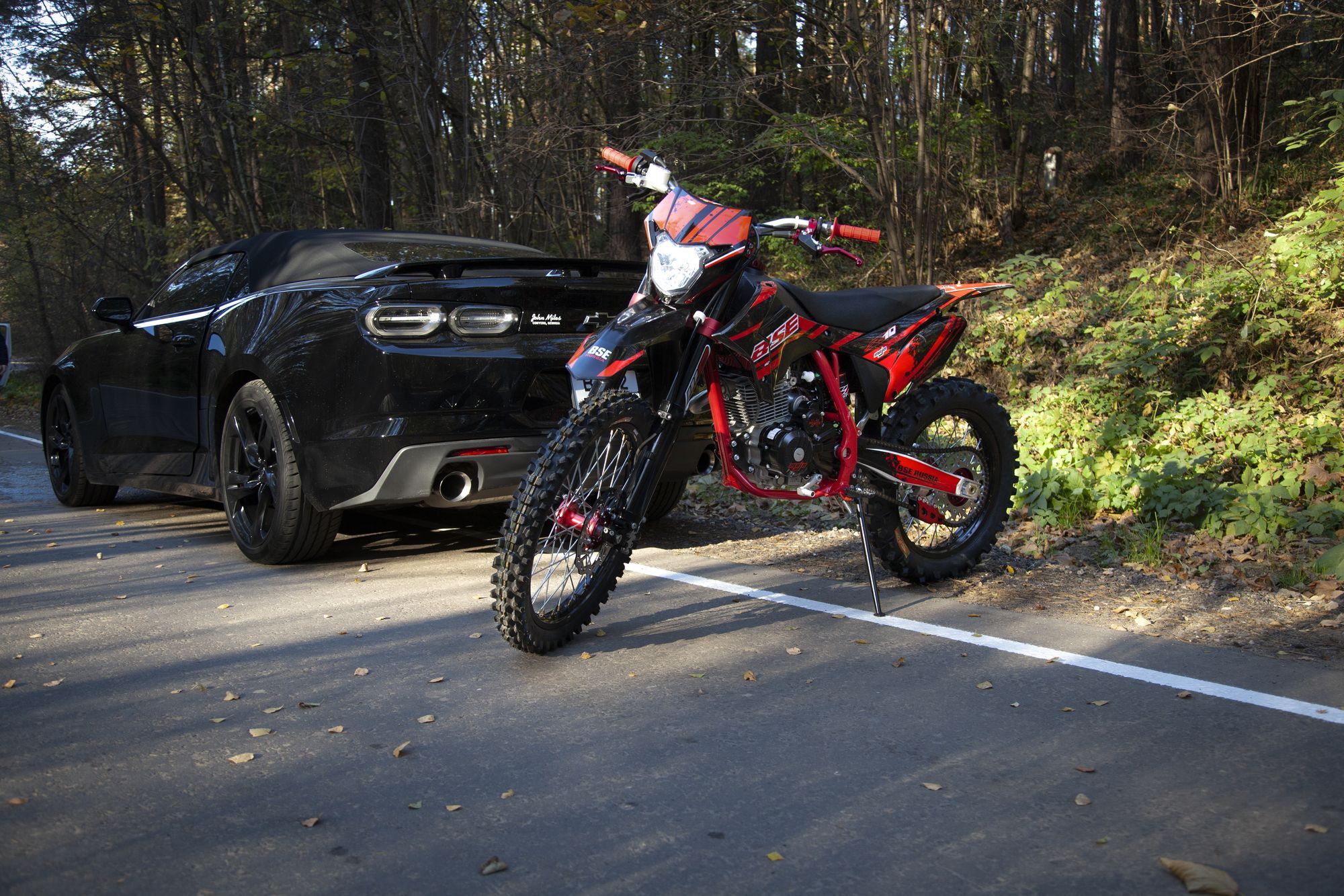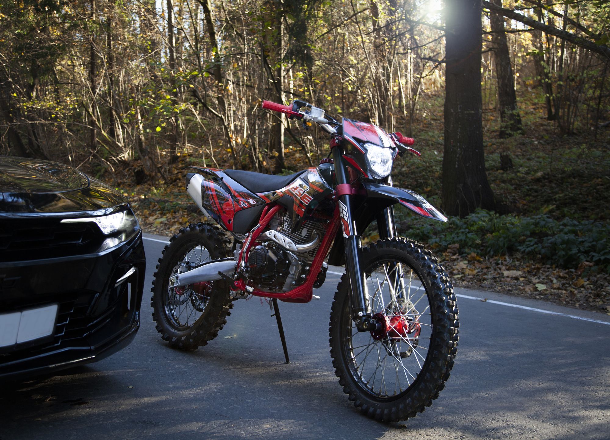 На мотоцикле установлены: усиленные легкосплавные колёсные диски MOJO, усиленная цепь, датчик моточасов, прочные анодированные CNC ступицы, усиленные траверсы, складные СNC рычаги тормоза и сцепления, защита коллектора. Мощная гидравлическая тормозная система HSК Racing остановит байк в любых условиях.