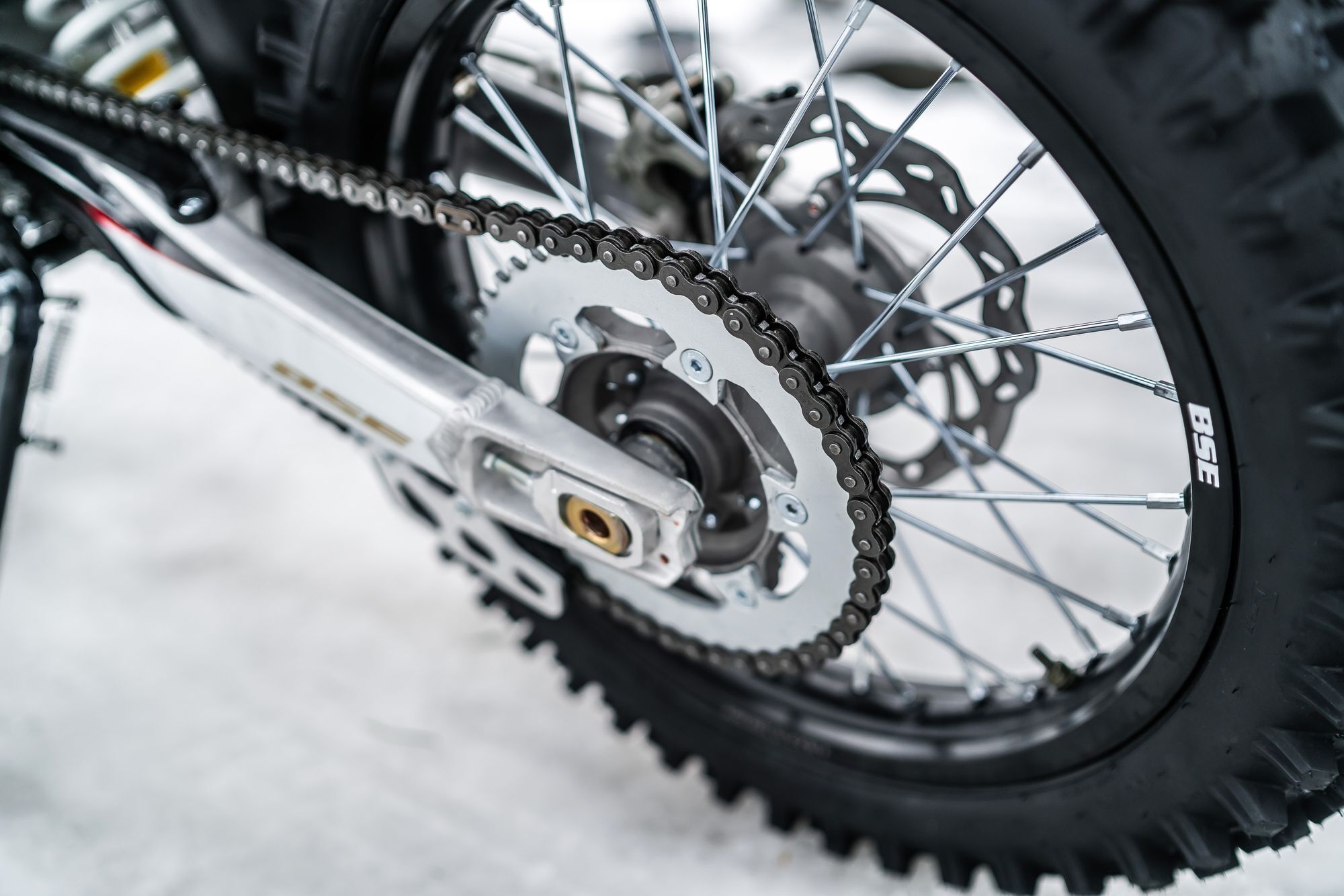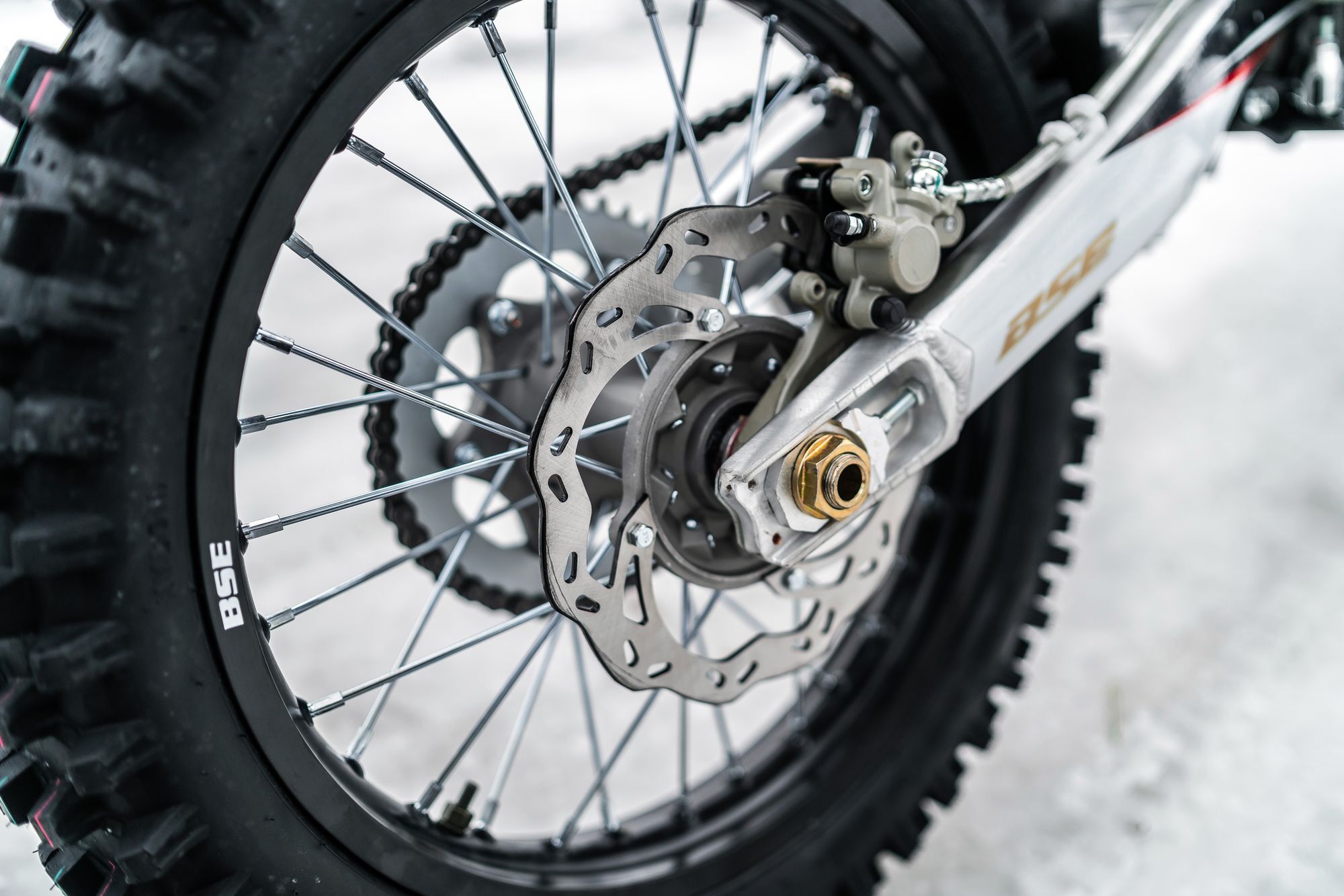 Прогрессия задней подвески, регулируемая энергоемкая подвеска, вилка “перевертыш”, стальная рама повышенной жёсткости с усилителями, буксаторы на усиленных ободах, усиленная 520 цепь, внедорожная резина – BSE Z3 не спасует в условиях серьезного бездорожья.
