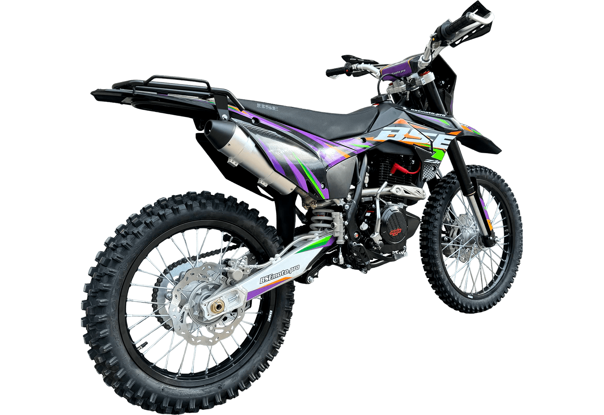 Среднеразмерный эндуро Z3 V готов на любые приключения! Мотоцикл оснащается стальная рамой повышенной жёсткости BOSUER с усилителями и алюминиевым мятником. Подвеска – регулируемая Mojo Standard с большими ходами помогает отрабатывать даже самые жесткие приземления, с лёгкостью "глотая" все неровности. Установлена прогрессия задней подвески. Мощная гидравлическая тормозная система HSK RACING остановит ваш мотоцикл максимально эффективно.