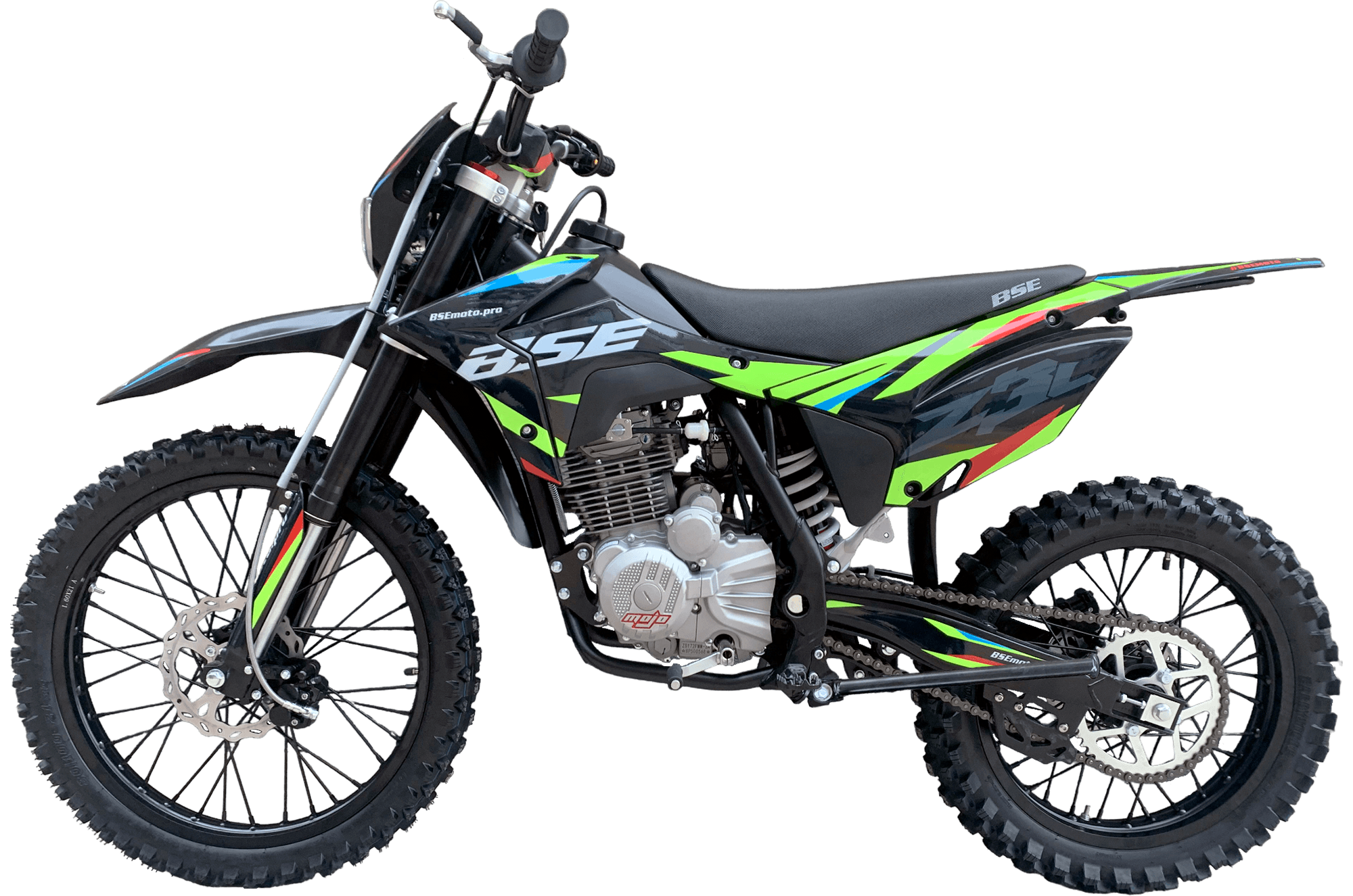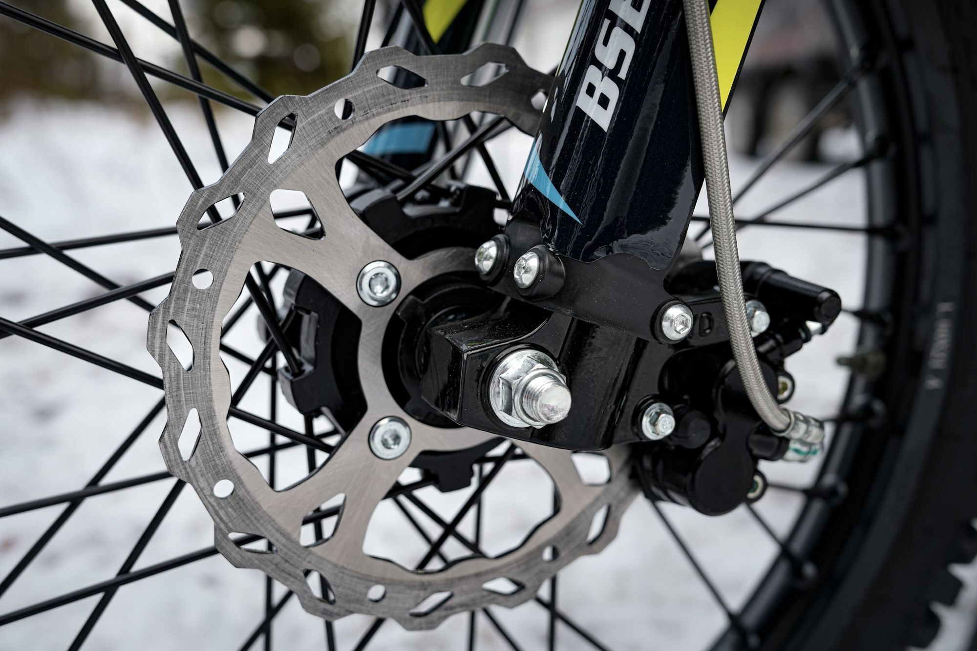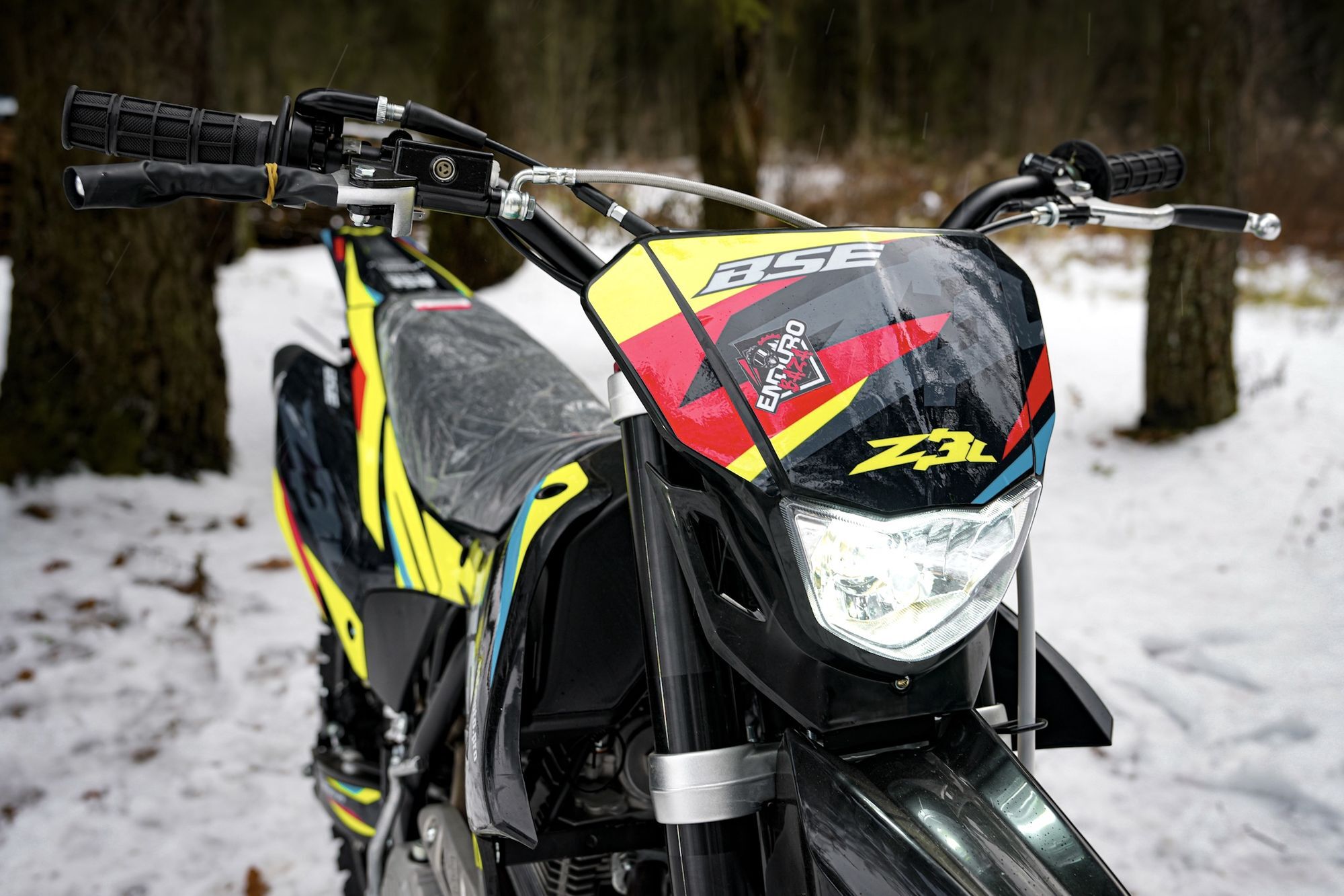 Прогрессия задней подвески, нерегулируемая энергоемкая подвеска, вилка “перевертыш”, стальная рама повышенной жёсткости, внедорожная резина Carrystone – BSE Z3 L не спасует в условиях серьезного бездорожья. Мощная гидравлическая тормозная система MOJO Racing остановит байк в любых условиях.