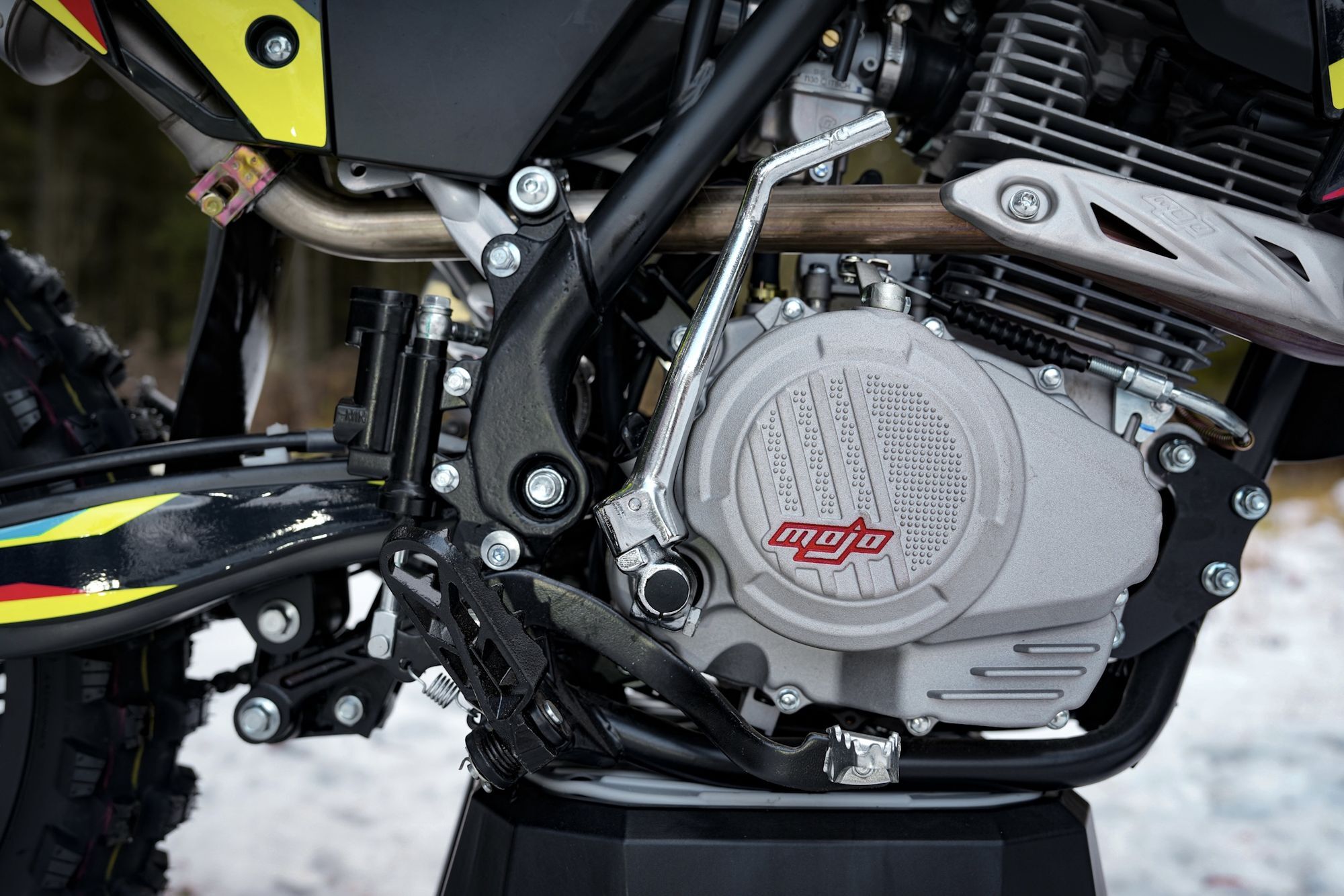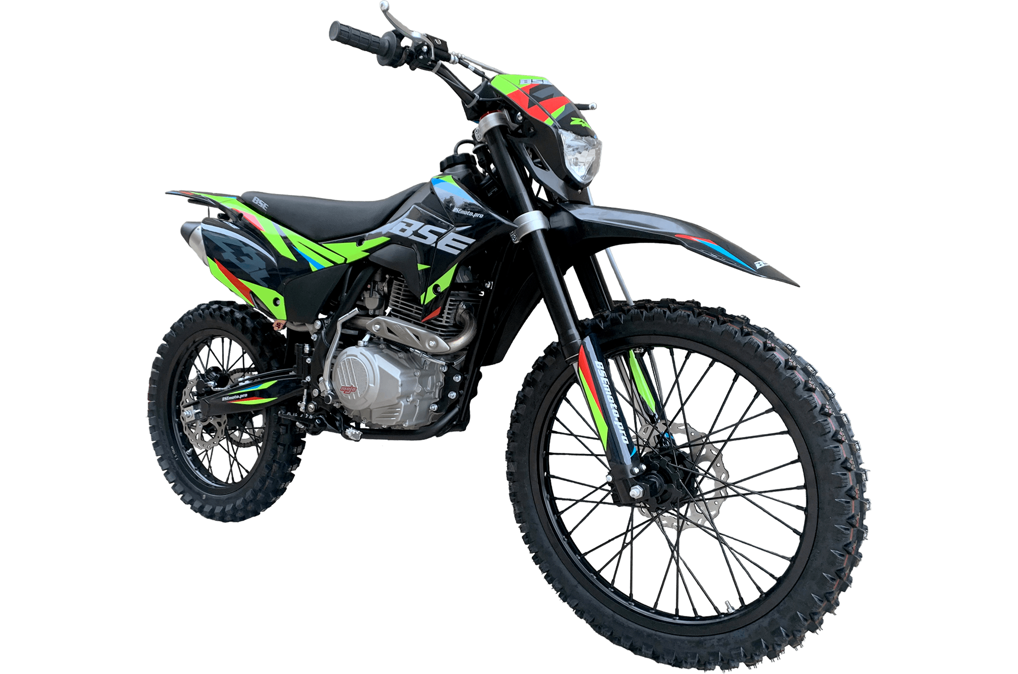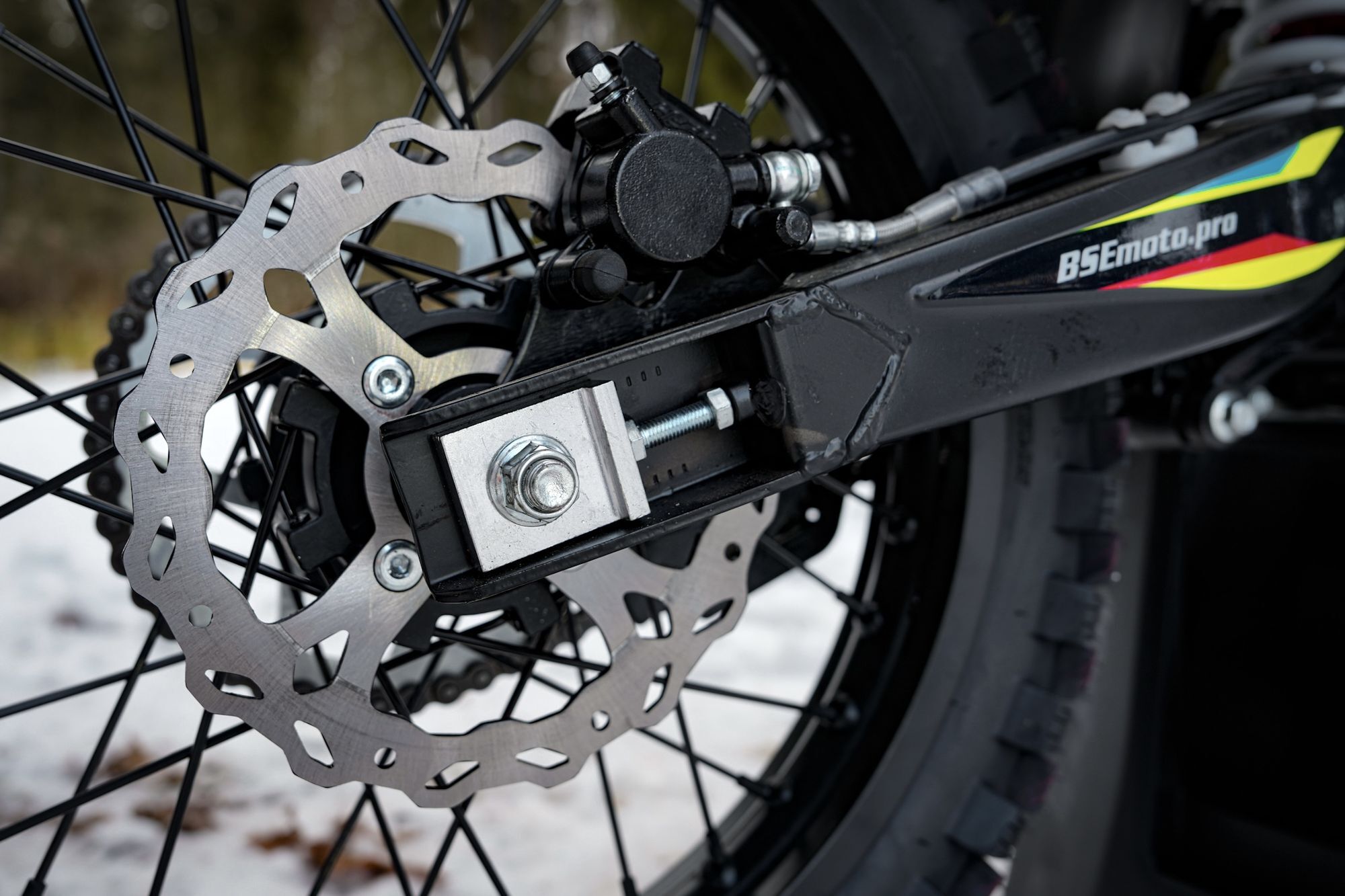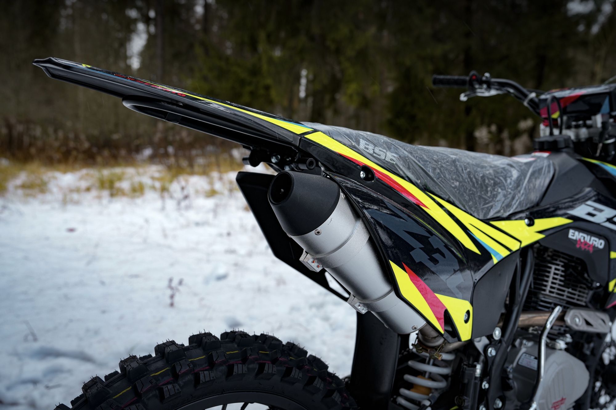 Прогрессия задней подвески, нерегулируемая энергоемкая подвеска, вилка “перевертыш”, стальная рама повышенной жёсткости, внедорожная резина Carrystone – BSE Z3 L не спасует в условиях серьезного бездорожья. Мощная гидравлическая тормозная система MOJO Racing остановит байк в любых условиях.
