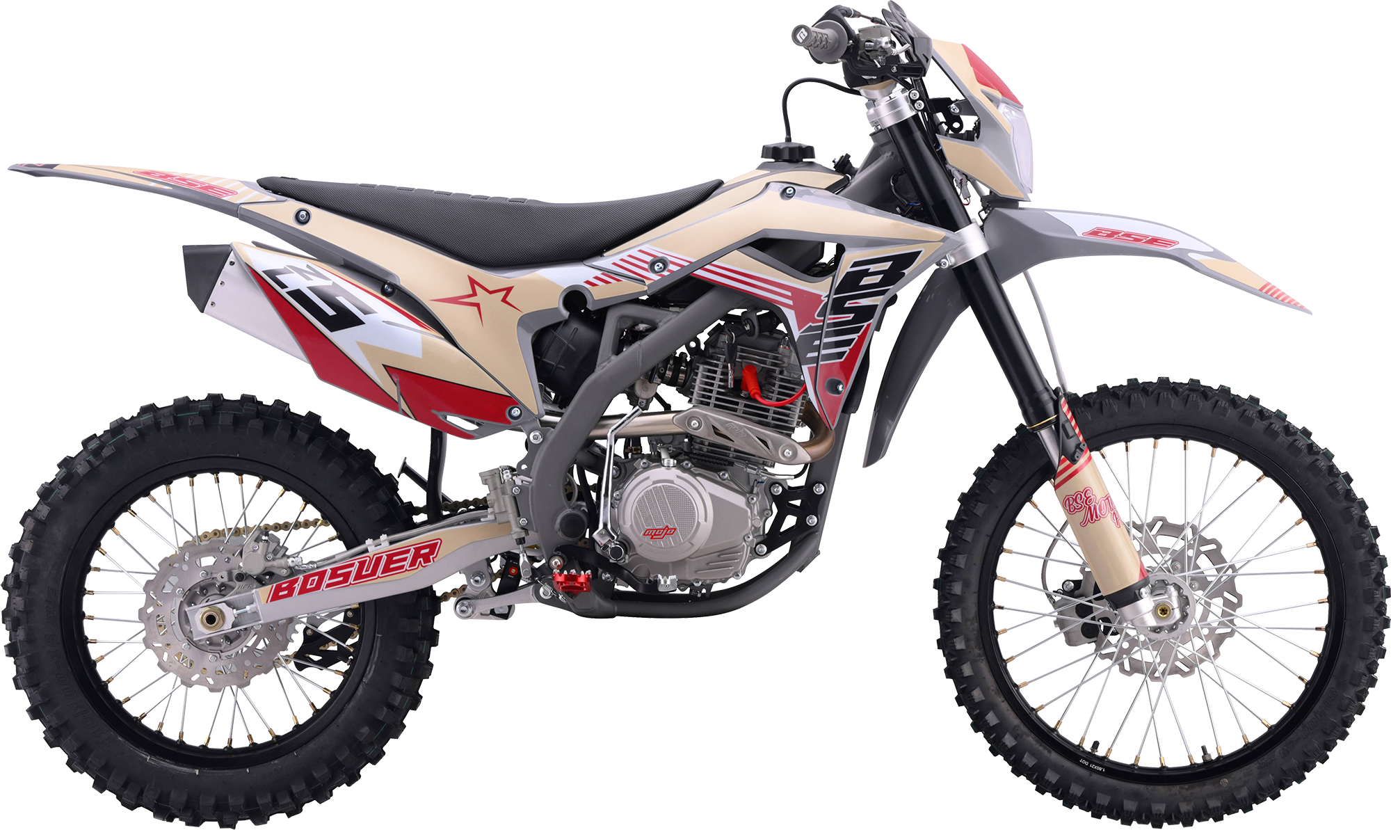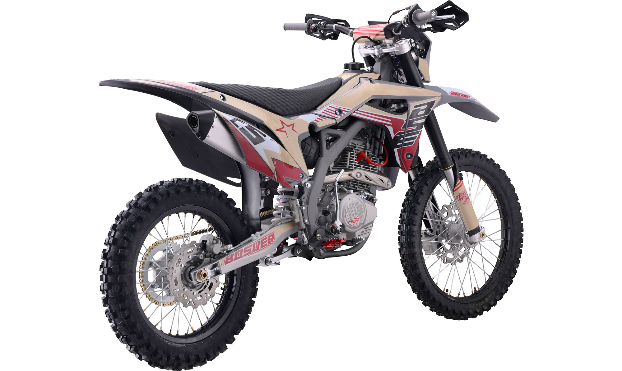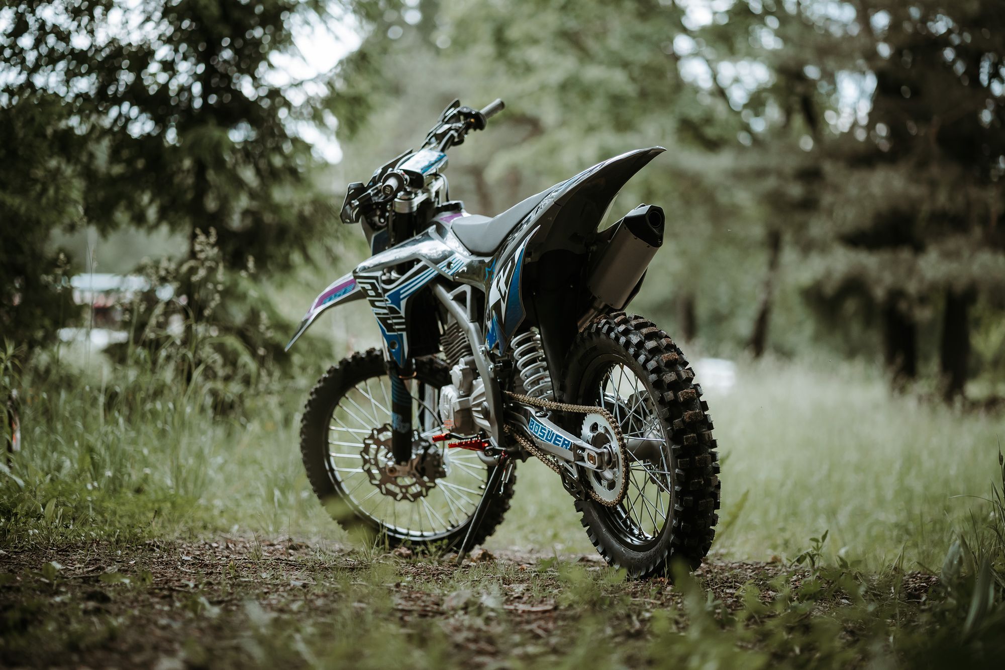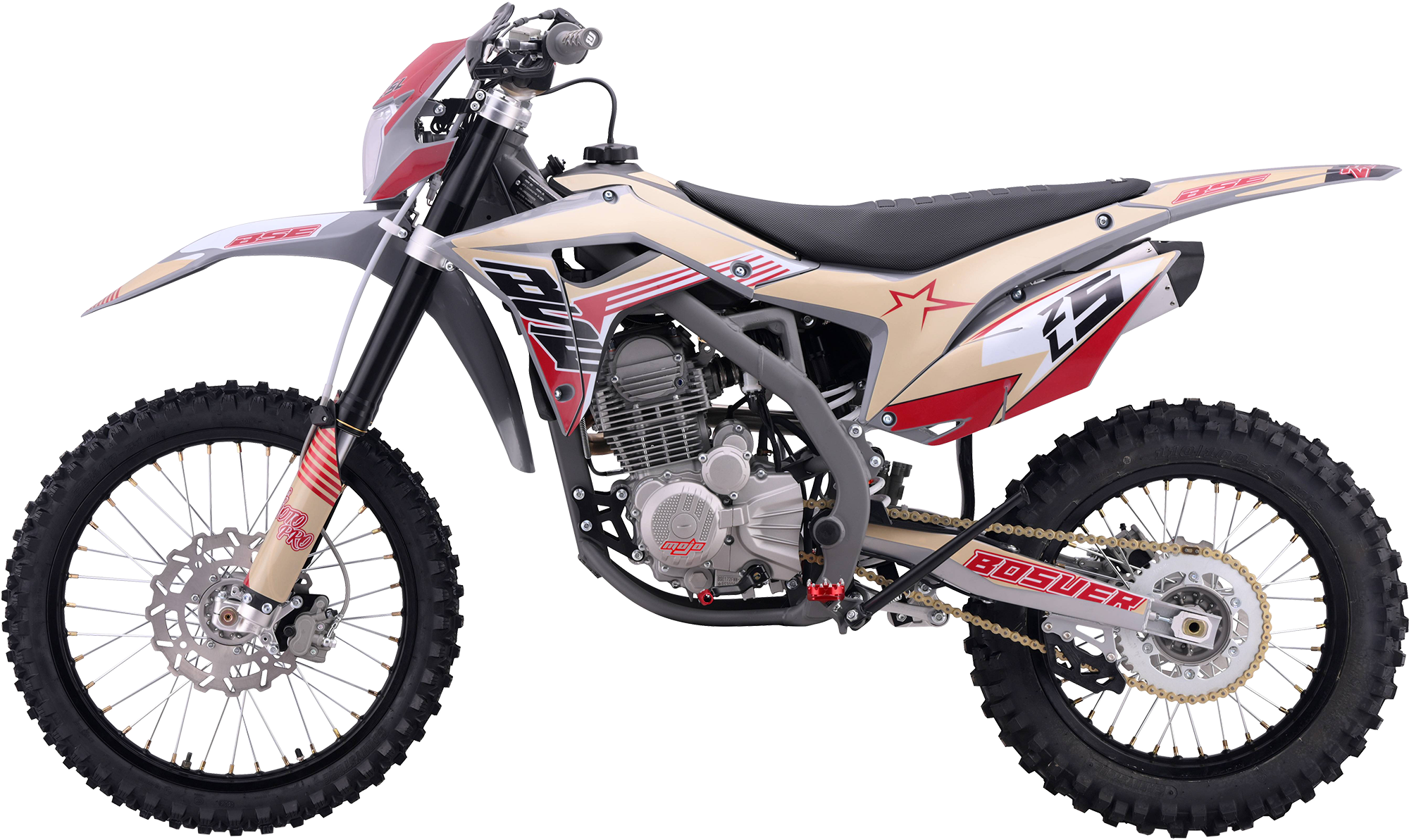 За основу мы взяли успешный полноразмерный Z5 и упростили комплектацию, чтобы сделать максимально привлекательный прайс, оставив главные компоненты — надежный 250-кубовый мотор Zonsen и усиленную стальную раму Bosuer. В итоге получили полноразмерный, функциональный и мощный эндуро мотоцикл. Идеально сбалансированный, устойчивый и готовый прощать ошибки при езде.