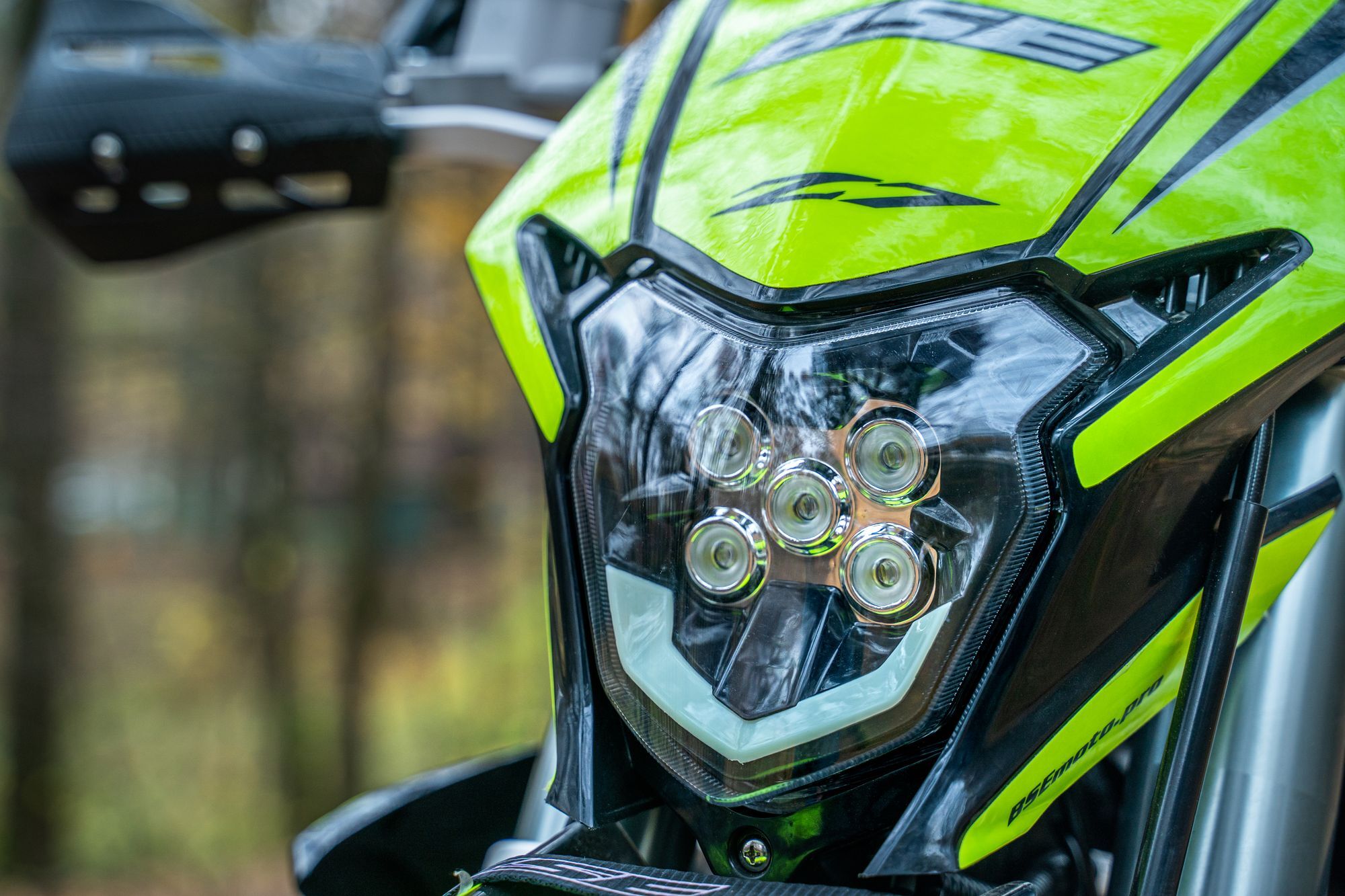 На BSE Z7 также можно с комфортом отправиться в продолжительное путешествие благодаря удобному сиденью, широкому спортивному рулю и наличию электростартера. Благодаря яркой LED фара головного света можно кататься в ночное время.