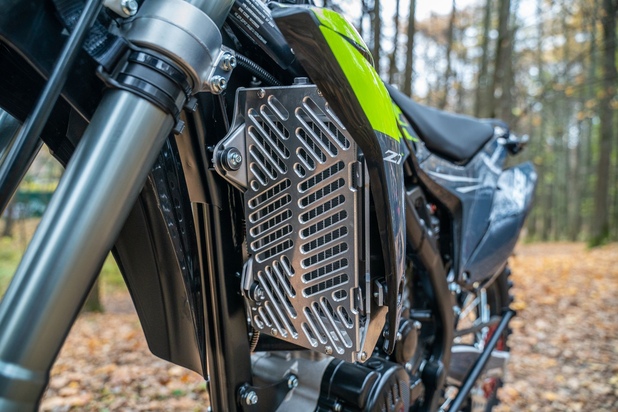 Z7 в заводской комплектации готов к покорению серьезного бездорожья благодаря полностью регулируемой подвески MOJO Racing c большими ходами, литым рычагам задней прогрессии, прямоточному выхлопу и “злой” внедорожной резине. Z7 идеально сбалансирован для эндуро, угол наклона вилки рассчитан специально для лёгкого преодоления высоких преград, подъёмов и барьеров. На мотоцикле установлены: прочнейший алюминиевый подрамник, усиленные легкосплавные колёсные диски, усиленная цепь, защита рук, датчик моточасов, прочные анодированные CNC ступицы, защита помпы и коллектора. Мощная гидравлическая тормозная система HSК Racing остановит байк в любых условиях.