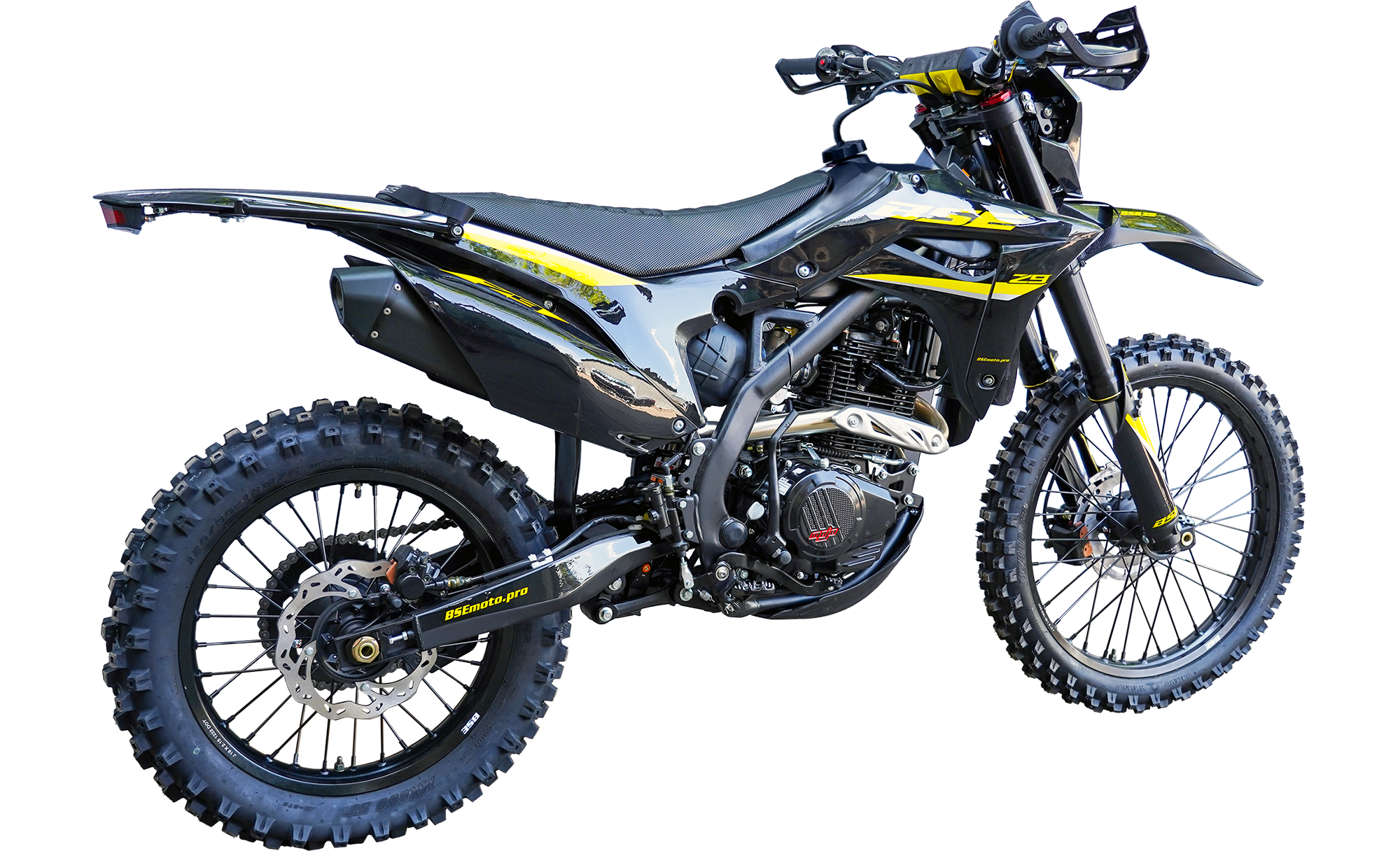 BSE Z9 – полноразмерный спортивный эндуро мотоцикл на стальной раме. Оснащен новым мотором ZS175 300 кубов с воздушным охлаждением. Лёгкий и манёвренный. Выполнен полностью в черном цвете.